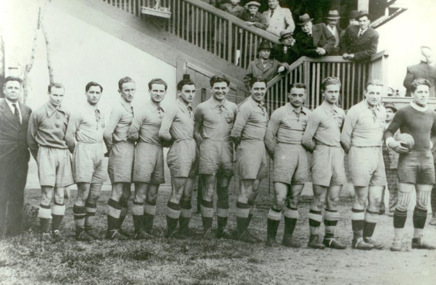Ripensia Timișoara, în 1938, la arena „Electrica”, înaintea unui meci. De la stânga la dreapta: Sepp Pojar, Bindea, Burger, Gall, Schwartz, Oprean, Deheleanu, Chiroiu, Dobay, Marcu, Kotormany, Pavlovici