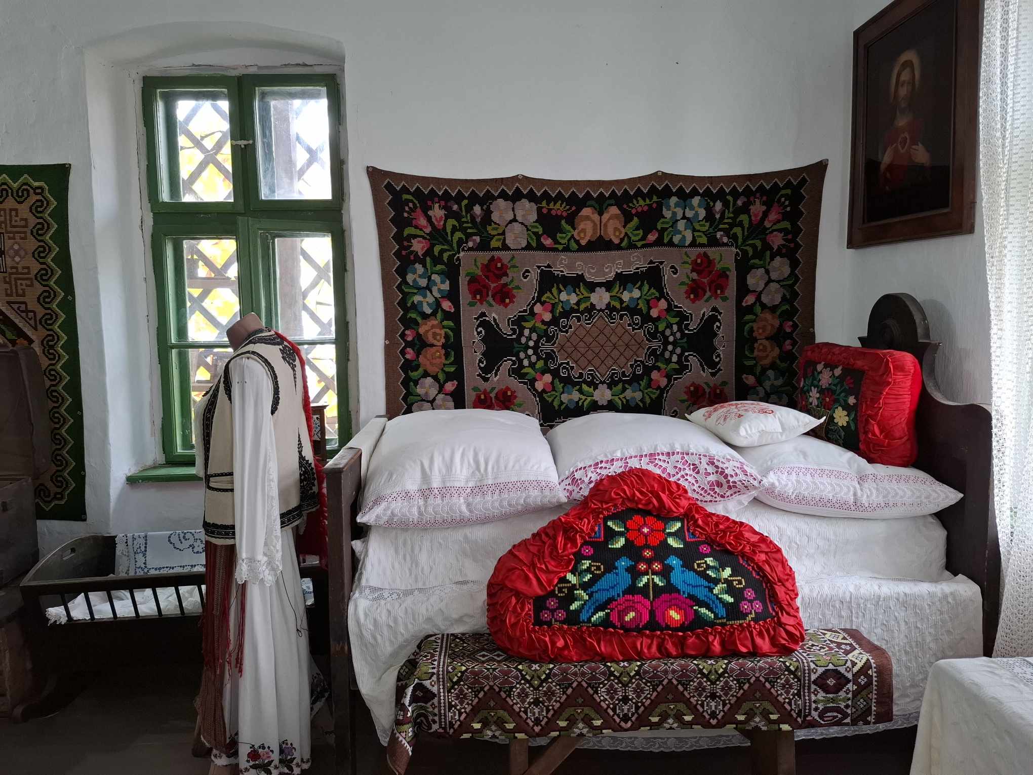 “Sunt două tipuri de șpais pe care ei le aveau. Bucătăria este și cu trimitere către beci. În șpaisul cald, datorită faptului că în această casă se găsește un cuptor foarte mare, unde pot intra între 15 și 20 de pâini, este și partea de șpais cald, unde ele puteau să-și facă aluatul pentru cozonac și pentru pâine. În soba bună, oamenii intrau doar o dată pe săptămână, în momentul în care își luau straiele de duminică sau în momentul în care trebuiau să meargă la evenimente. În soba bună regăsim două paturi tradiționale din vremurile respective, o ladă de zestre și denumirea mobilierului din vremuri respective era credenț”, povestește Ioana Afrișan.
