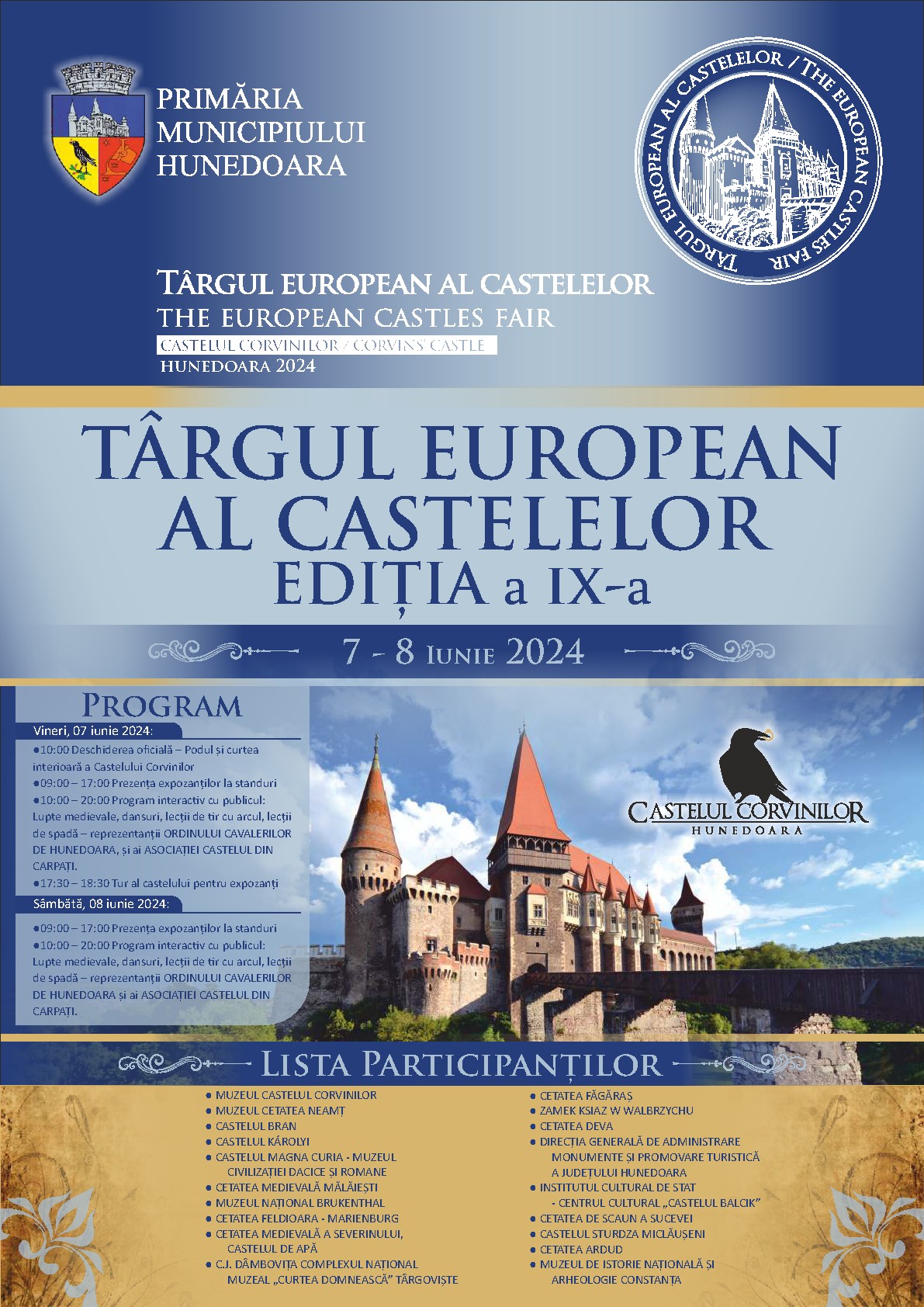 Castelul Corvinilor va fi gazda ediției a IX-a a Târgului European al Castelelor care se va desfășura în zilele de 7 și 8 iunie.