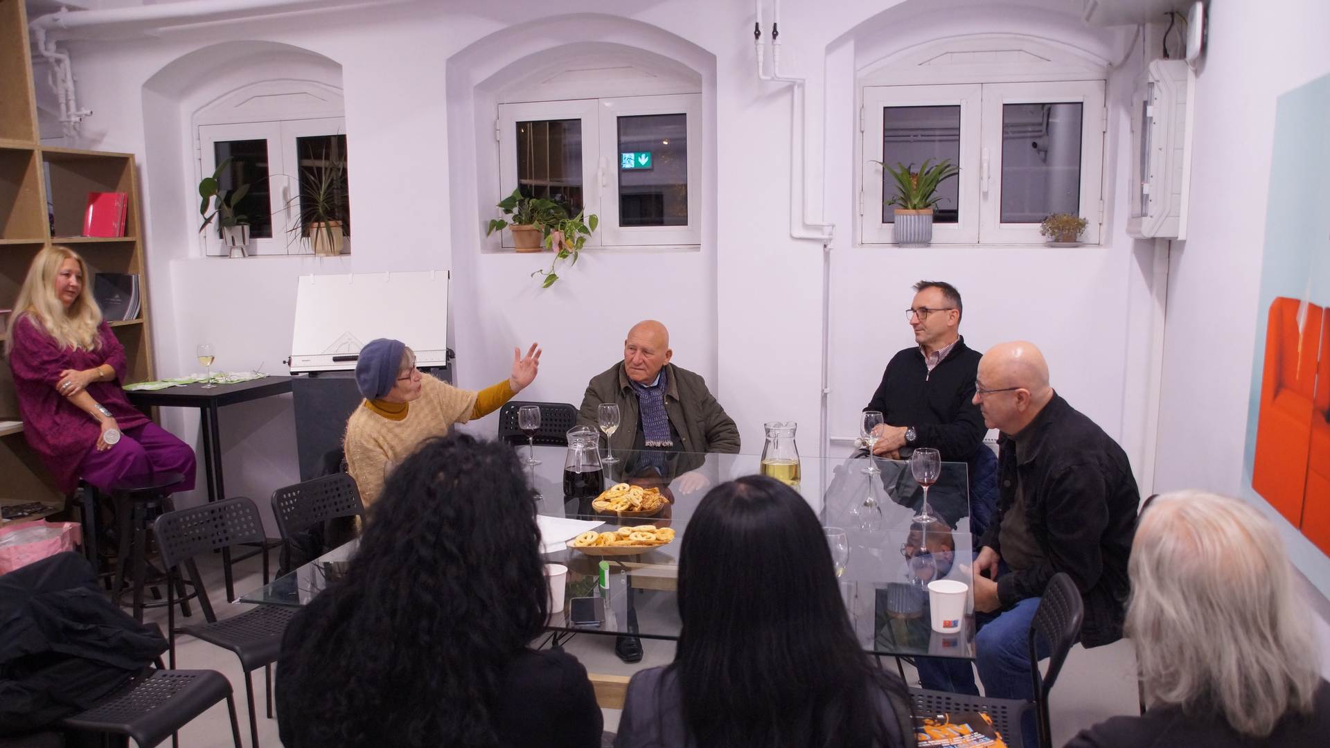 Au fost apoi rememorate la un pahar de vin sau ceai, în MV1 (chiar lângă expoziția Disco MV curată de Mimo Obradov), întâmplări din studenție în care s-a putut remarca tensiunea dintre poetul și … inginerul Robert Șerban. Pe unele le veți auzi și pe frecvențe noastre.