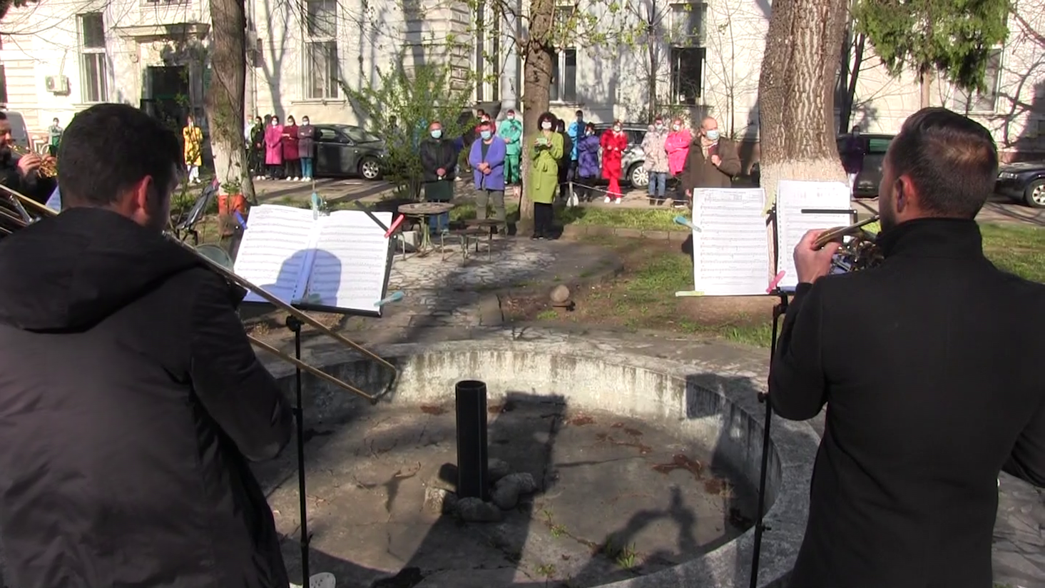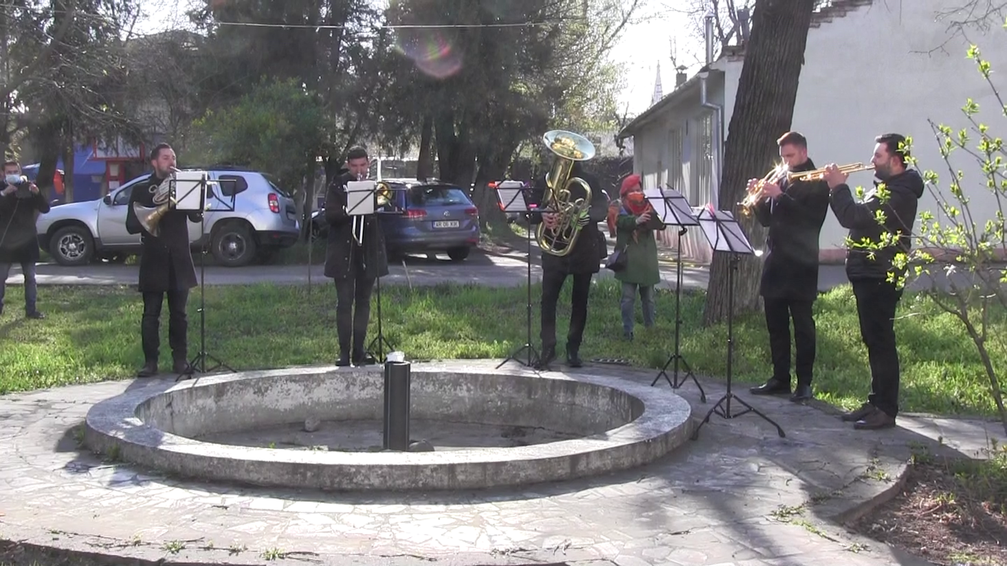 Artiştii şi-au adus instrumente şi partituri şi s-au instalat în faţa Spitalului TBC, iar apoi în faţa fostului spital municipal – acum secţie COVID-19 în cadrul Spitalului Judeţean – oferind un spectacol pentru cadrele medicale de Ziua Mondială a Sănătății.