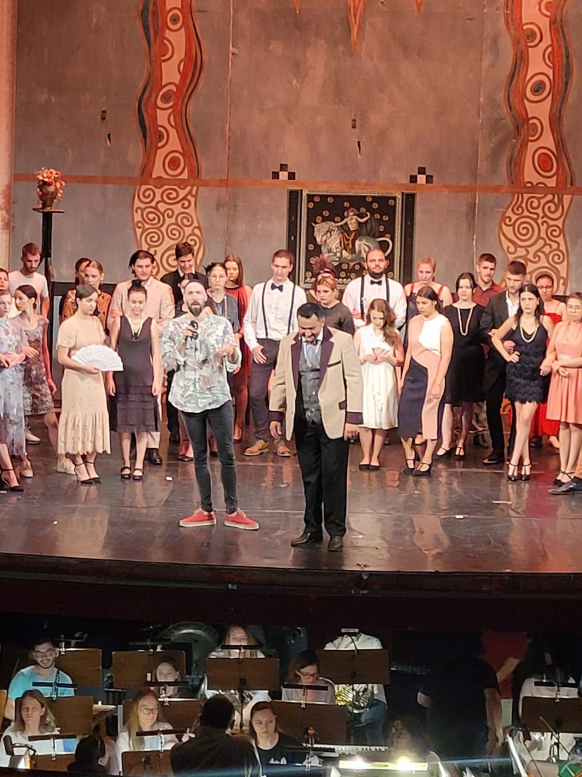 „După doi ani de pandemie, de tristeţe, de izolare, Facultatea de Muzică şi Teatru din cadrul Universităţii de Vest din Timişoara revine la viaţă, cu o forţă asemănătoare păsării Phoenix, printr-o operetă care este o explozie de bucurie, de dragoste, de întoarcere la viaţă: „Bal la Savoy” de Paul Abraham!