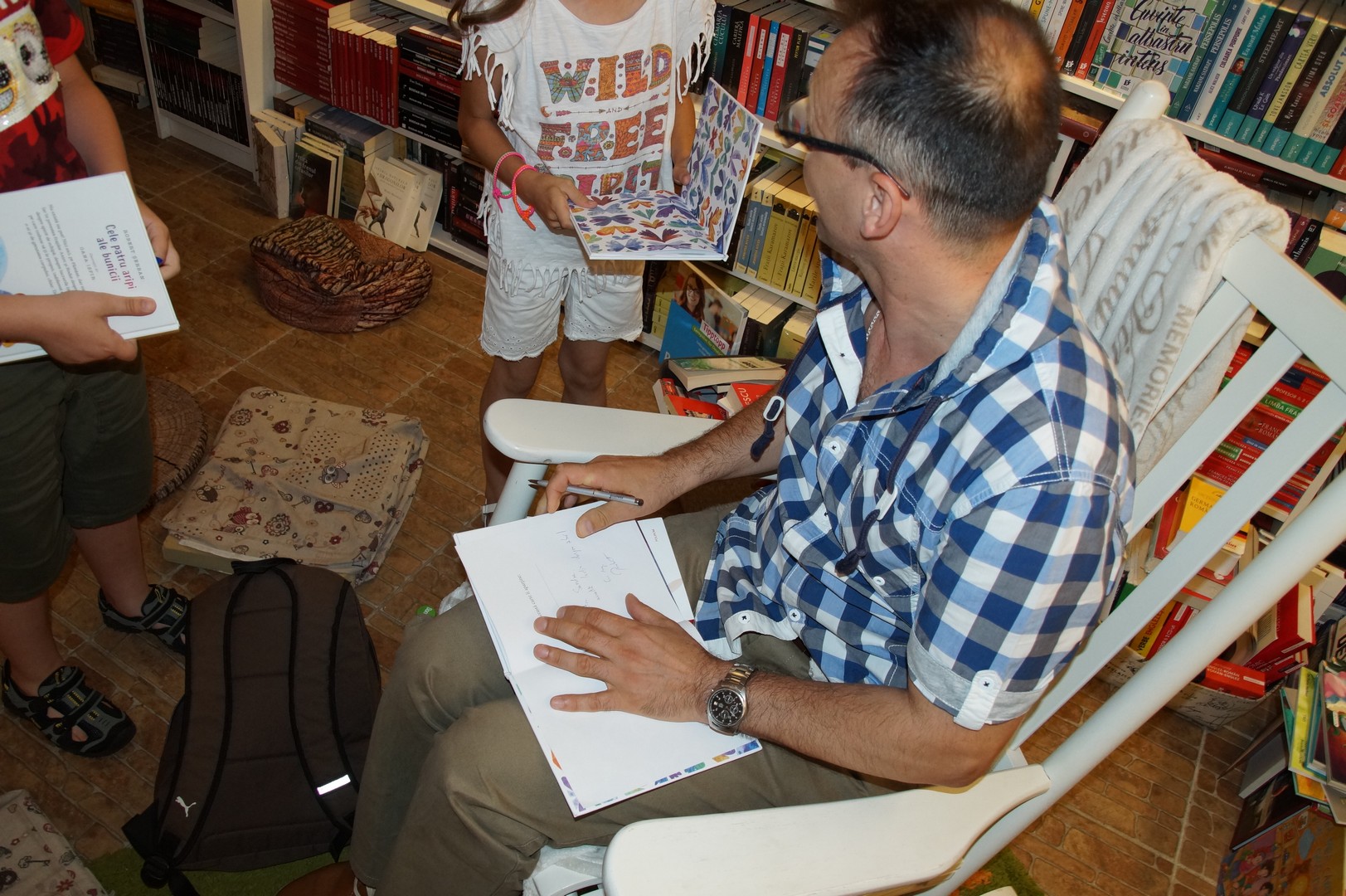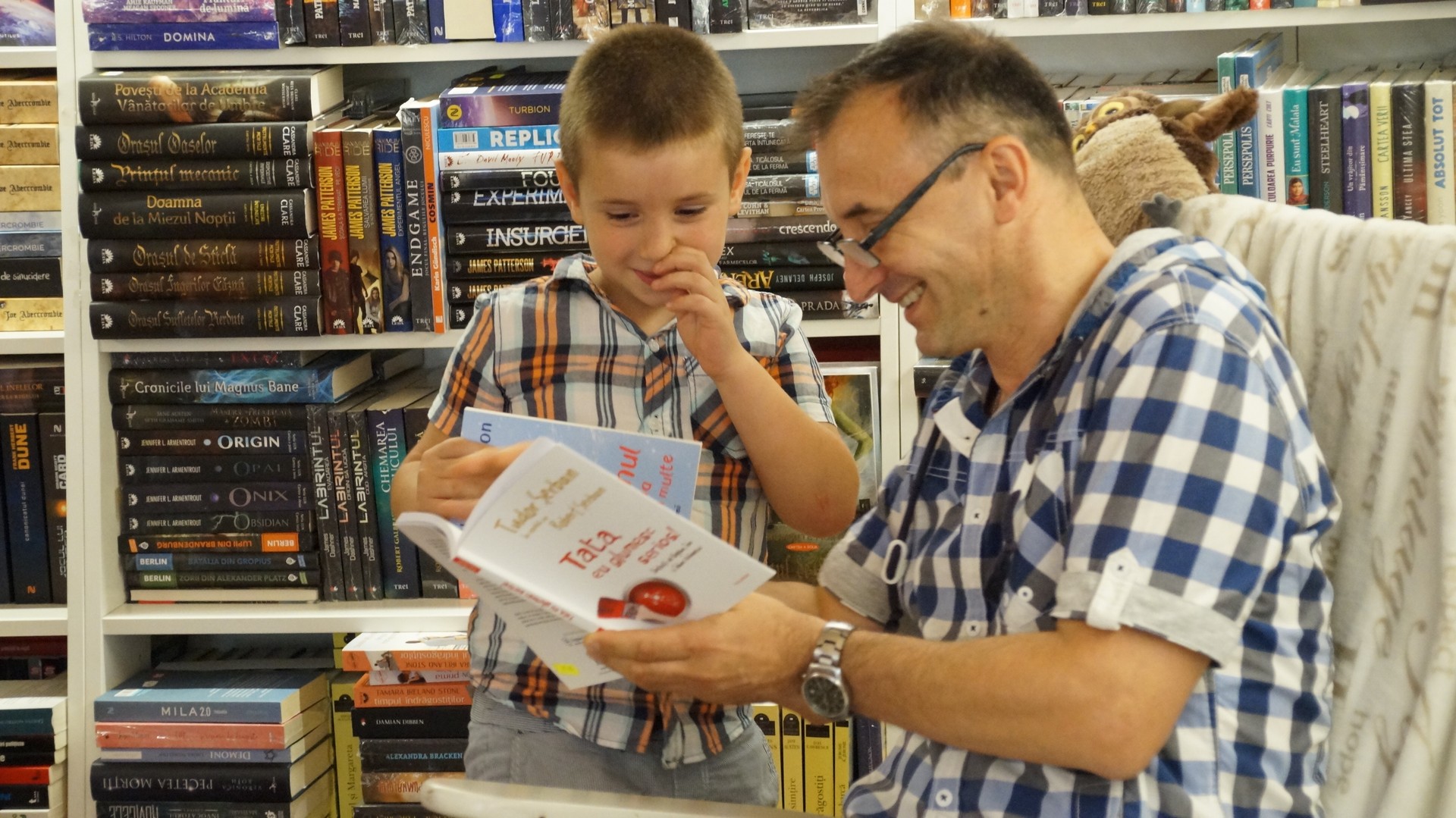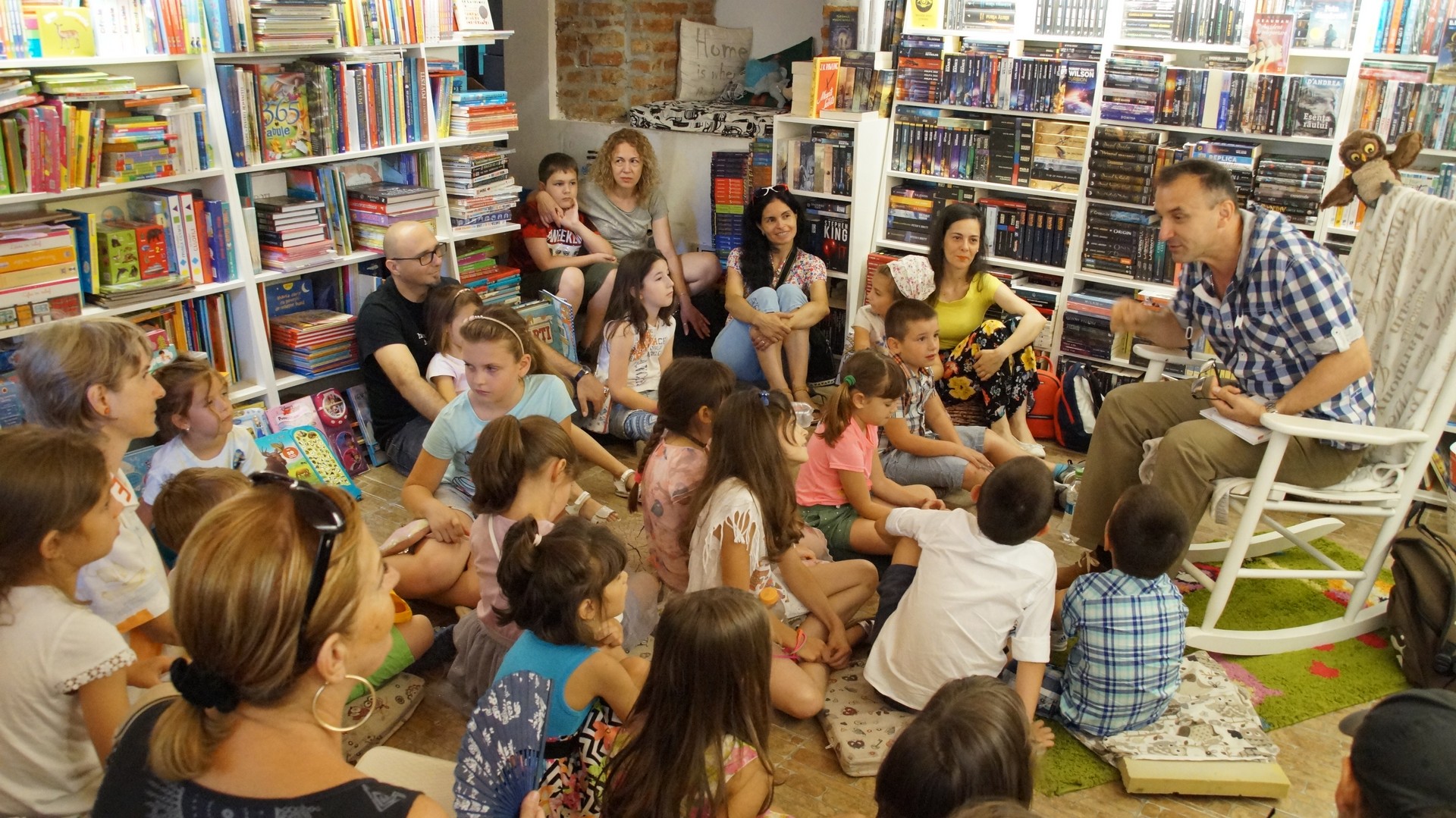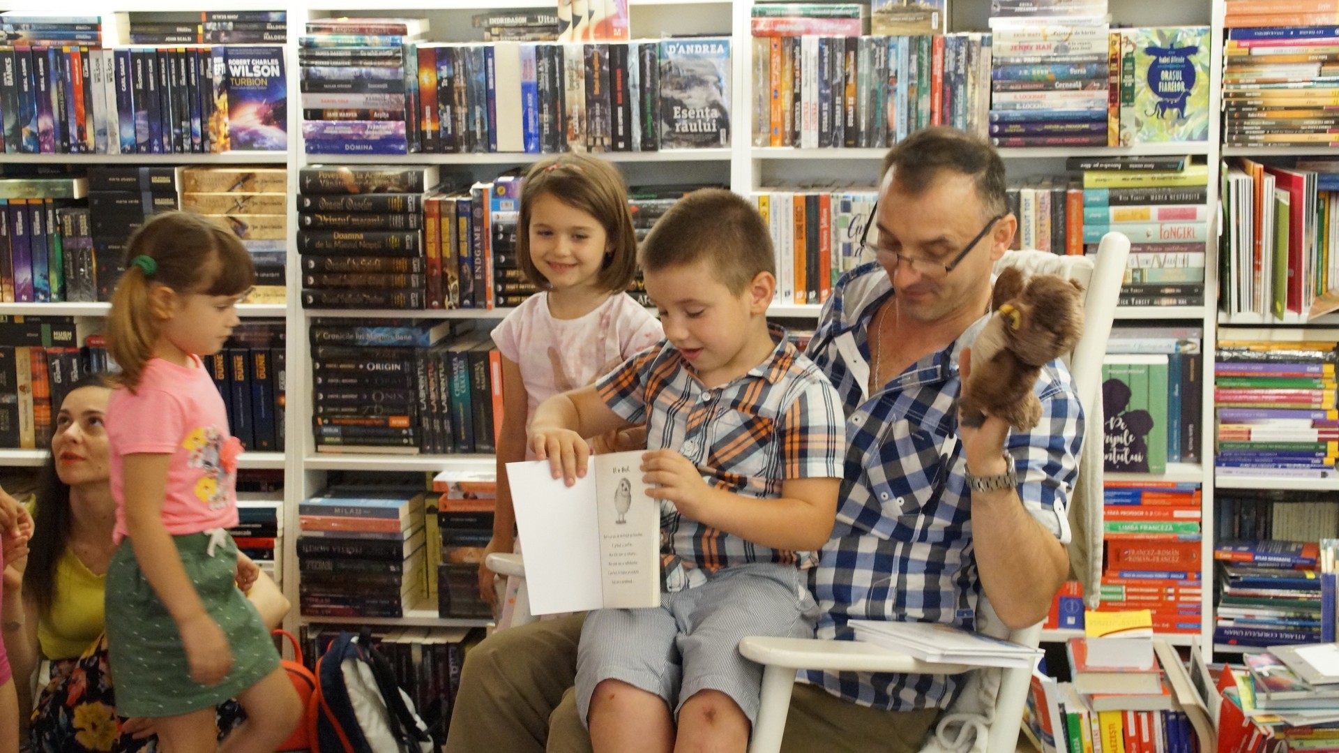 Lectura nu s-a oprit la volumele lui Robert Șerban, Tudor a ținut să le dezvăluie celorlați copii cum scapă de temeri … o bufniță căreia îi e frică de întuneric. Nu au lipsit întrebările din partea celor mici, dar și autografele autorului.