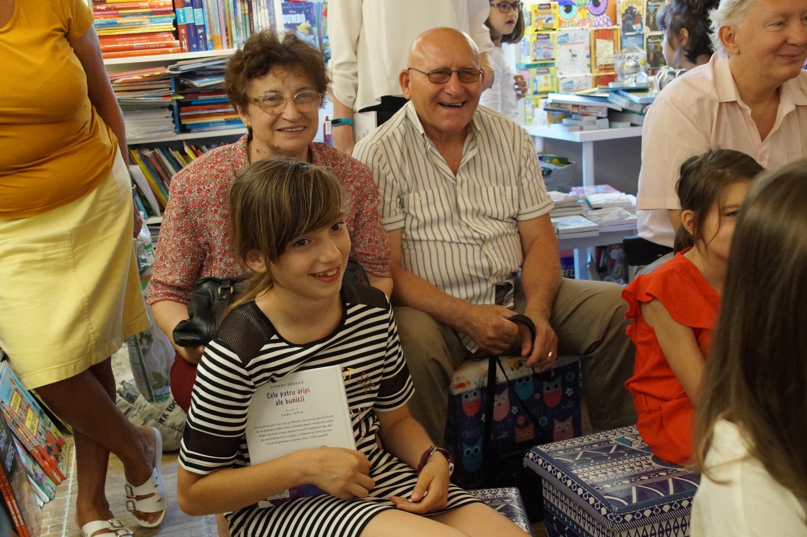 Obișnuita întâlnire duminicală de la Librăria ”La Două bufnițe” din Timișoara a avut povestitori inediți. Robert Șerban și-a lansat cartea pentru copii ”Cele patru aripi ale bunicii”, în prezența celor mici, dar și a părinților și bunicilor. Printre ei, cei doi copii ai lui, Tudor și Crina și … bunicii acestora (foto)!