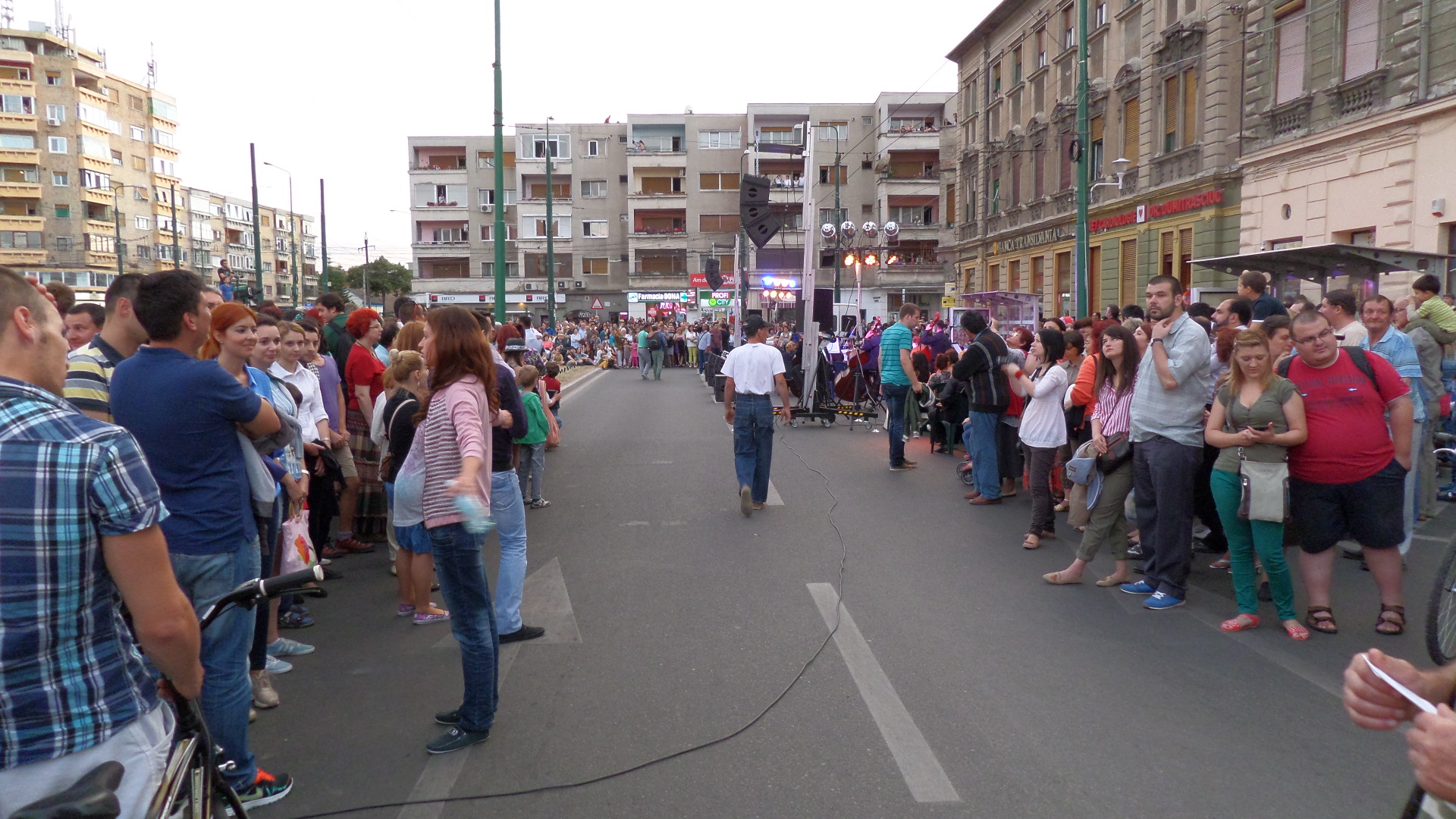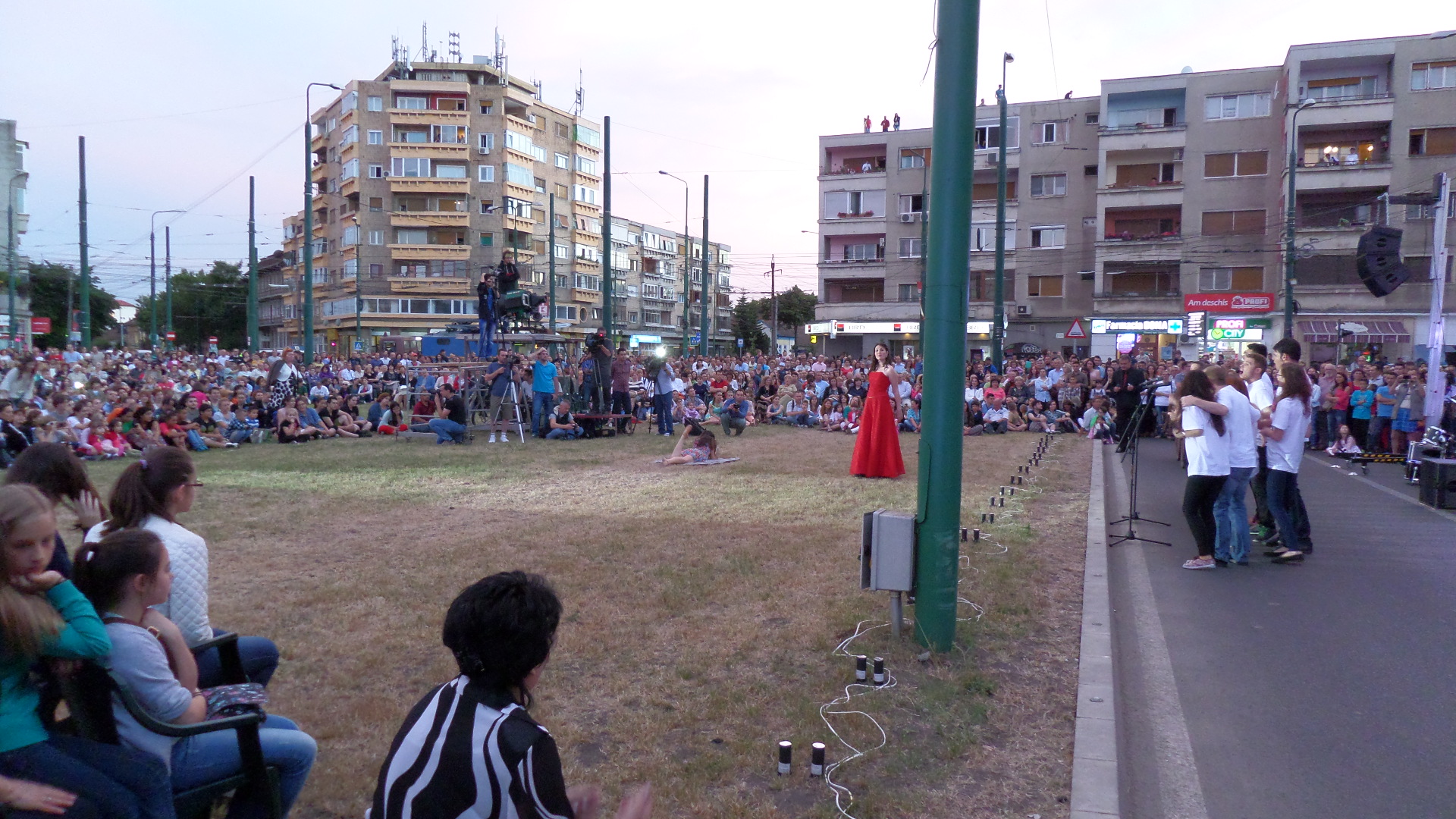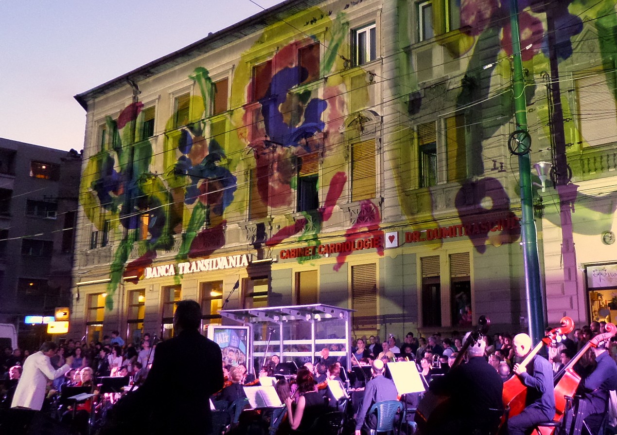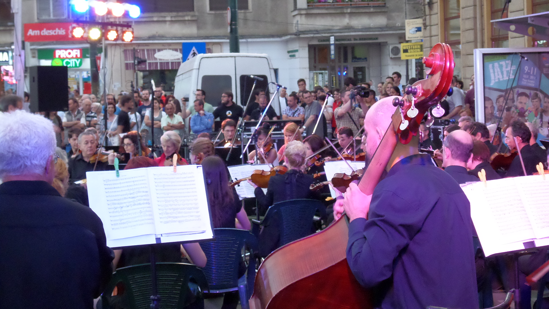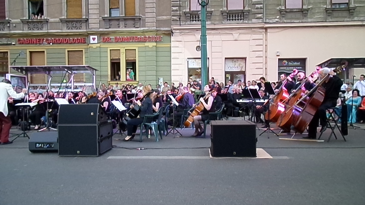 Filarmonica „Banatul” a concertat  sâmbătă, 14 iunie, de la ora 21:00,  într-un spaţiu neconvenţional – sensul giratoriu din Piaţa Bălcescu din Timişoara, în cadrul Festivalului Artelor Timișorene.