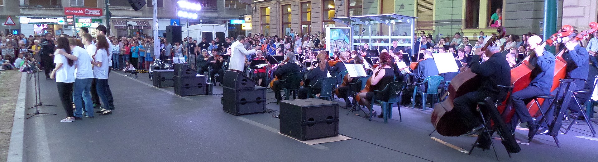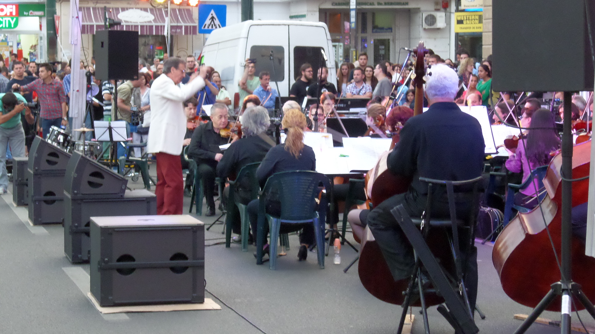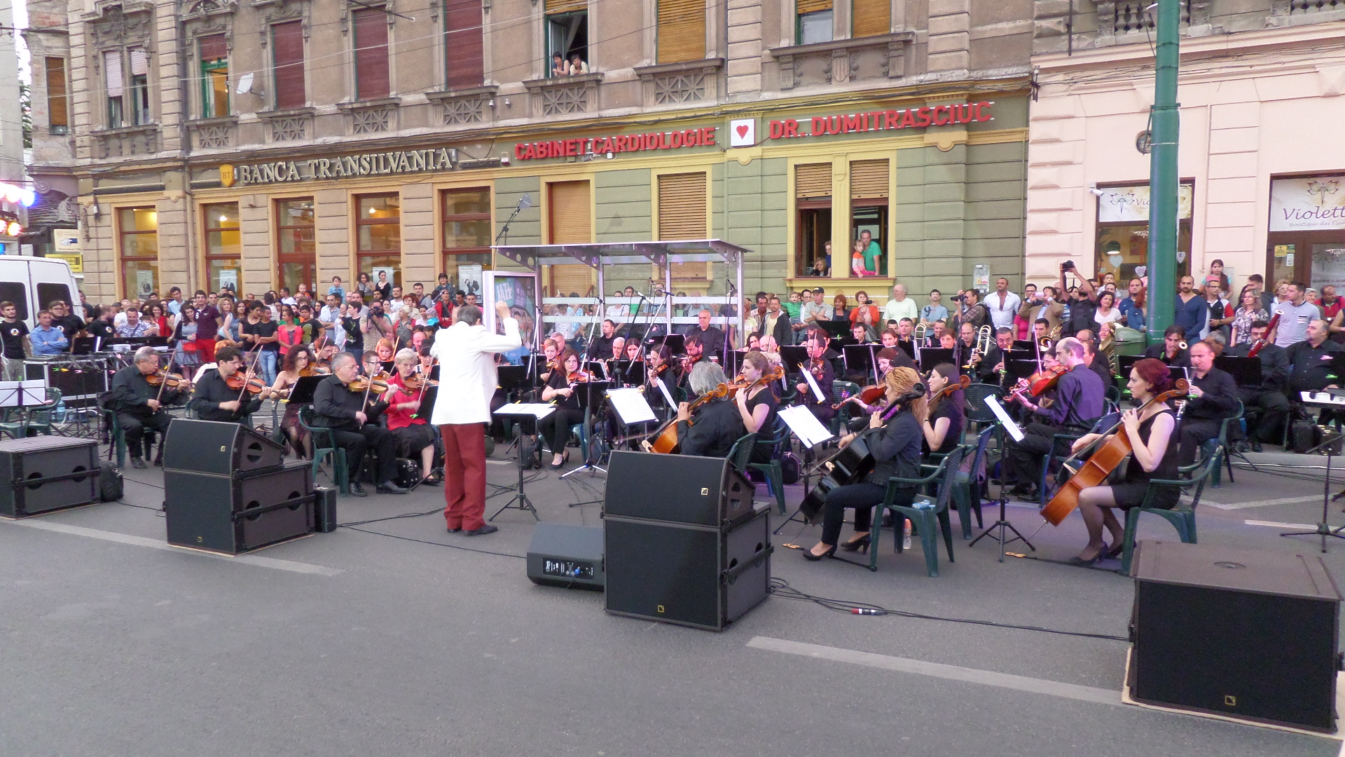 Maestrul Peter Oschanitzky a dirijat concertul pe care orchestra Filarmonicii „Banatul” și Corul „Ion Românu” l-a susţinut în aer liber, în Piața Bălcescu. La ineditul eveniment au participat 120 de instrumentiști, 30 de soliști, numeroși artiști invitați. Programul a cuprins partituri din creația lui Rossini, F. Loewe, E. Morricone, Mozart, V. Monti, P. Mascagni, dar și piese scrise de compozitorul timișorean Josef Kappl.