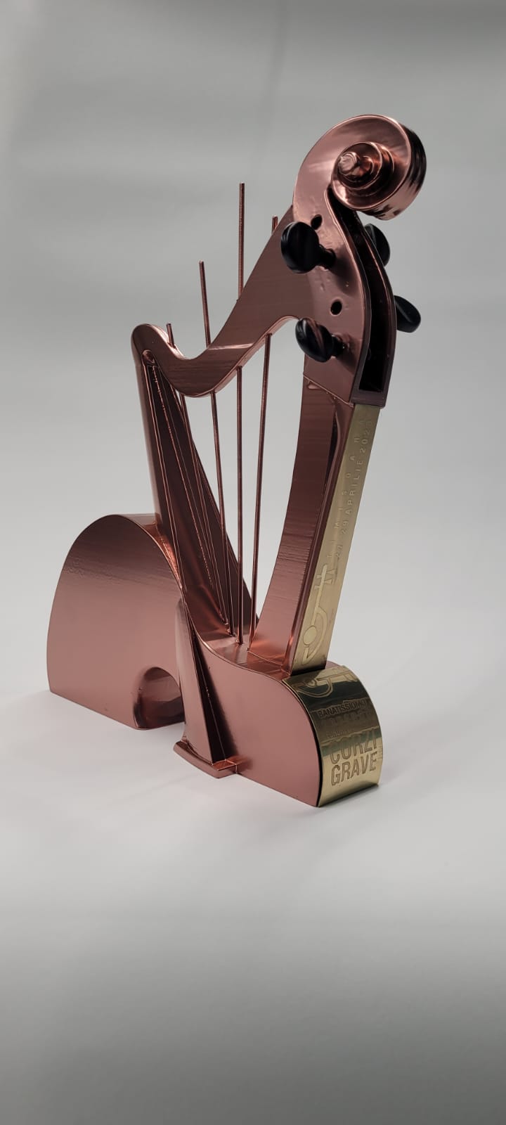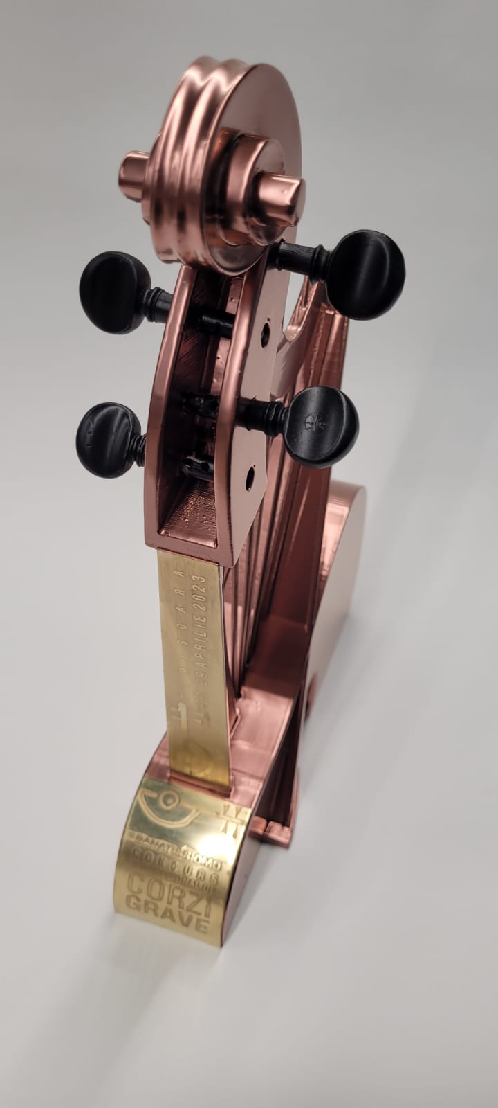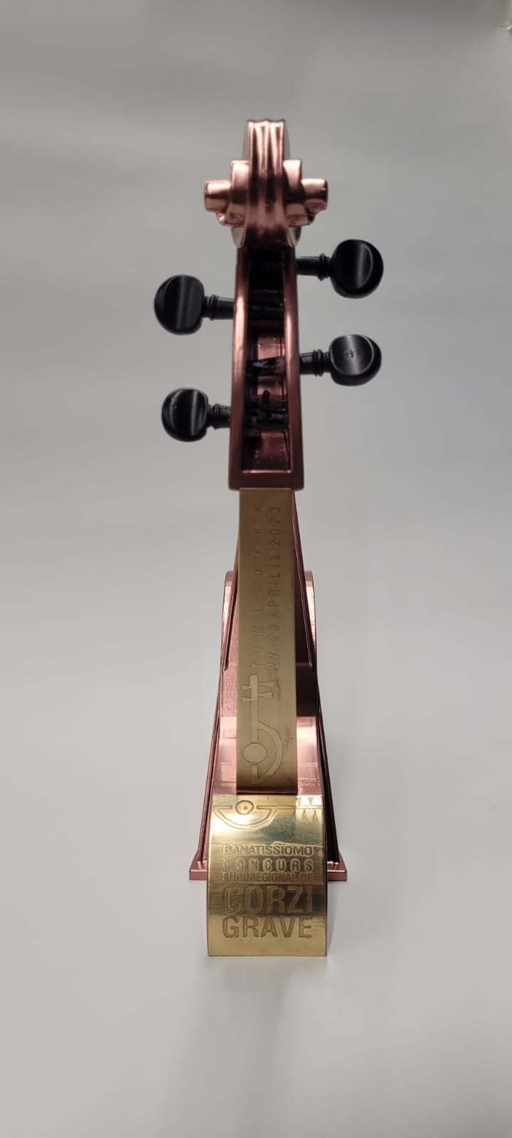 Trofeul Concursului Euroregional de Corzi Grave BANATISSIMO – in memoriam Marian Uțanu, conceput de conf. univ. dr. Remus Rotaru, este, în premieră, printat 3D, în laboratoarele de design ale Facultății de Arte și Design din cadrul Universității de Vest din Timișoara, cu contribuția doctorandului Alexandru Mihai – muzician.