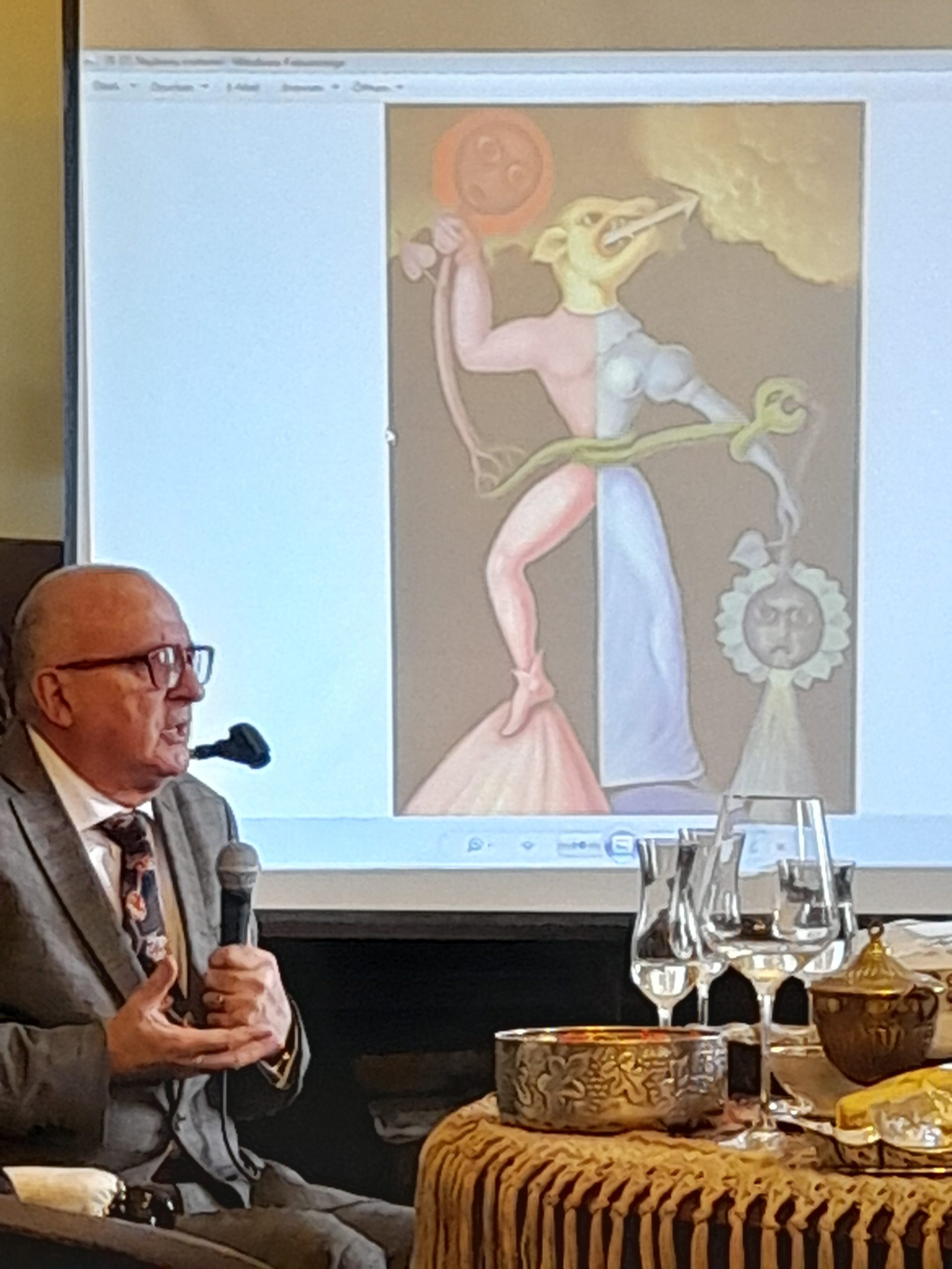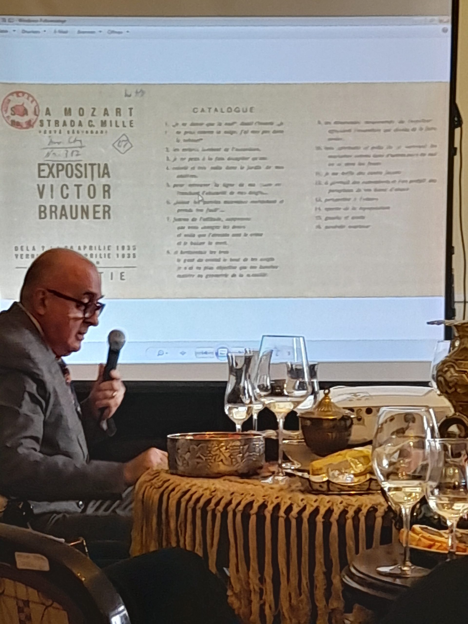 La cea mai recentă întâlnire, de la sediul Galeriei Andreas, a fost inivitat distinsul profesor Cristian-Robert Velescu, istoric și critic de artă, care a prezentat auditoriului – colecționari, iubitori de artă și artiști vizuali – o parte din „secretele” avangardei și sensurile „ascunse” în arta lui Victor Brauner.