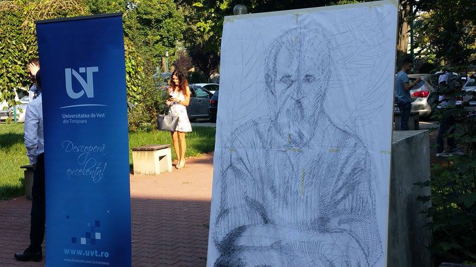 Lucrarea se completează cu câte un cui pentru fiecare donaţie de 10 lei iar iniţiatorii proiectului unesc cu sfoară conturul. Donaţia UVT reprezintă numărul de şefi de promoţie pe care i-a avut şi îi are în prezent instituţia de învăţământ superior, spune rectorul Marilen Pirtea.