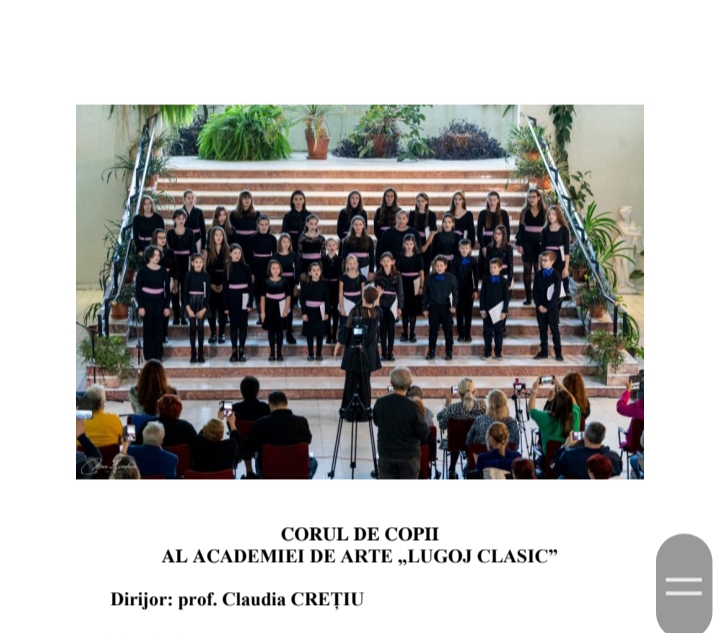 CORUL DE COPII AL ACADEMIEI DE ARTE „LUGOJ CLASIC”. Dirijor: prof. Claudia CREȚIU.
