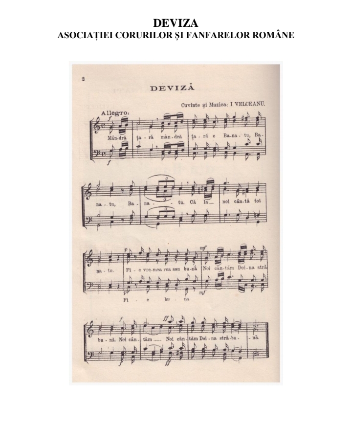 „În 8/21 septembrie 1922, în ziua Rugii de Sfânta Mărie Mică, la Chizătău s-au ținut lucrările Adunării generale de constituire a Asociaţiei Corurilor şi Fanfarelor Române din Banat, convocată la inițiativa lui Ioan Vidu și Iosif Velceanu (fondatorul și dirijorul Corului „Doina” din Timișoara), după lansarea unui apel. Remis, în 10 august, principalelor gazete regionale, în apel era precizată motivația social-politică a noului for, unic în istoria muzicii românești, dar și țelul artistic: continua perfecționare a reuniunilor corale și a fanfarelor românești. Era împlinirea unui mai vechi deziderat, după entuziastele apeluri lansate de Vidu, în 1903 și 1904, pentru „conscrierea” corurilor bănățene, apel configurat în 1906, cu prilejul Serbărilor Jubiliare din capitala Regatului Român, de Ioan Vidu și D. G. Kiriac, fratele său de „preste deal, la nana-n vale”.