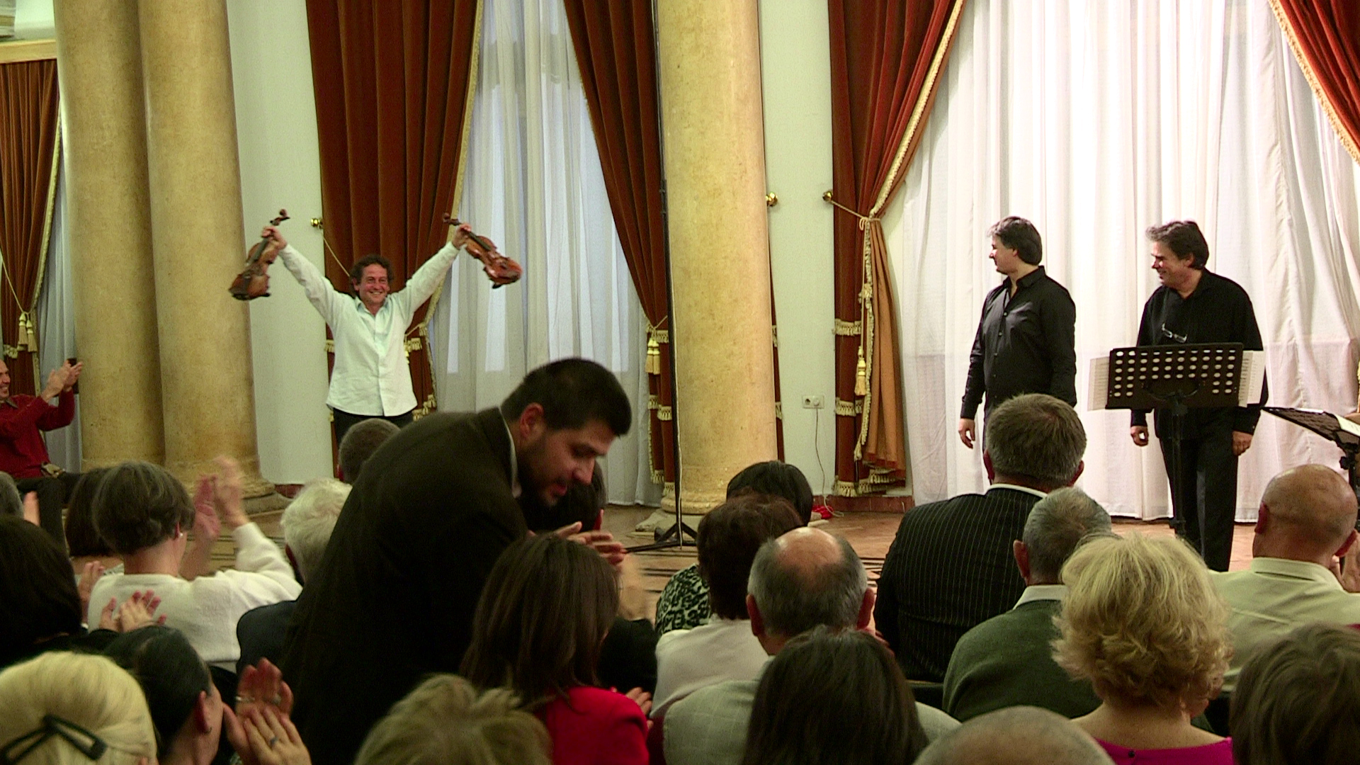 Violonistul Liviu Prunaru este concert-maestrul celebrei orchestre Royal Concertgebouw Amsterdam, cotată drept una dintre cele mai bune din lume. Cariera sa solistică internaţională în plină ascensiune cuprinde colaborări cu cele mai importante orchestre din lume, precum London Philarmonic Orchestra, London Symphony Orchestra, Orchestre National de Belgique, Orchestra Filarmonică din Atena. Violonistul Gabriel Croitoru este prof. univ. Dr. la Universitatea Naţională de Muzică Bucureşti, solist-concertist al Orchestrelor Radio România, al Filarmonicii Paul Constantinescu’ din Ploieşti şi membru al Cvartetului de Stat ‘Transilvan’ – Cluj-Napoca. A cântat ca solist alături de importante orchestre europene, printre care orchestrele simfonice din Monte-Carlo, Salonic, Sevilla, Cannes. Pianistul Horia Mihail este unul din cei mai apreciaţi muzicieni români ai generaţiei sale. În calitatea sa de solist concertist al Orchestrelor Radio România, Horia Mihail susţine numeroase concerte şi recitaluri pe scena Sălii Radio din Bucureşti, colaborează cu orchestre de profil din ţară, fiind totodată solist al Filarmonicii din Braşov, dar şi în turnee în ţară sau străinătate.De-a lungul timpului a susţinut peste 2.000 de recitaluri şi concerte în 18 ţări, pe patru continente.