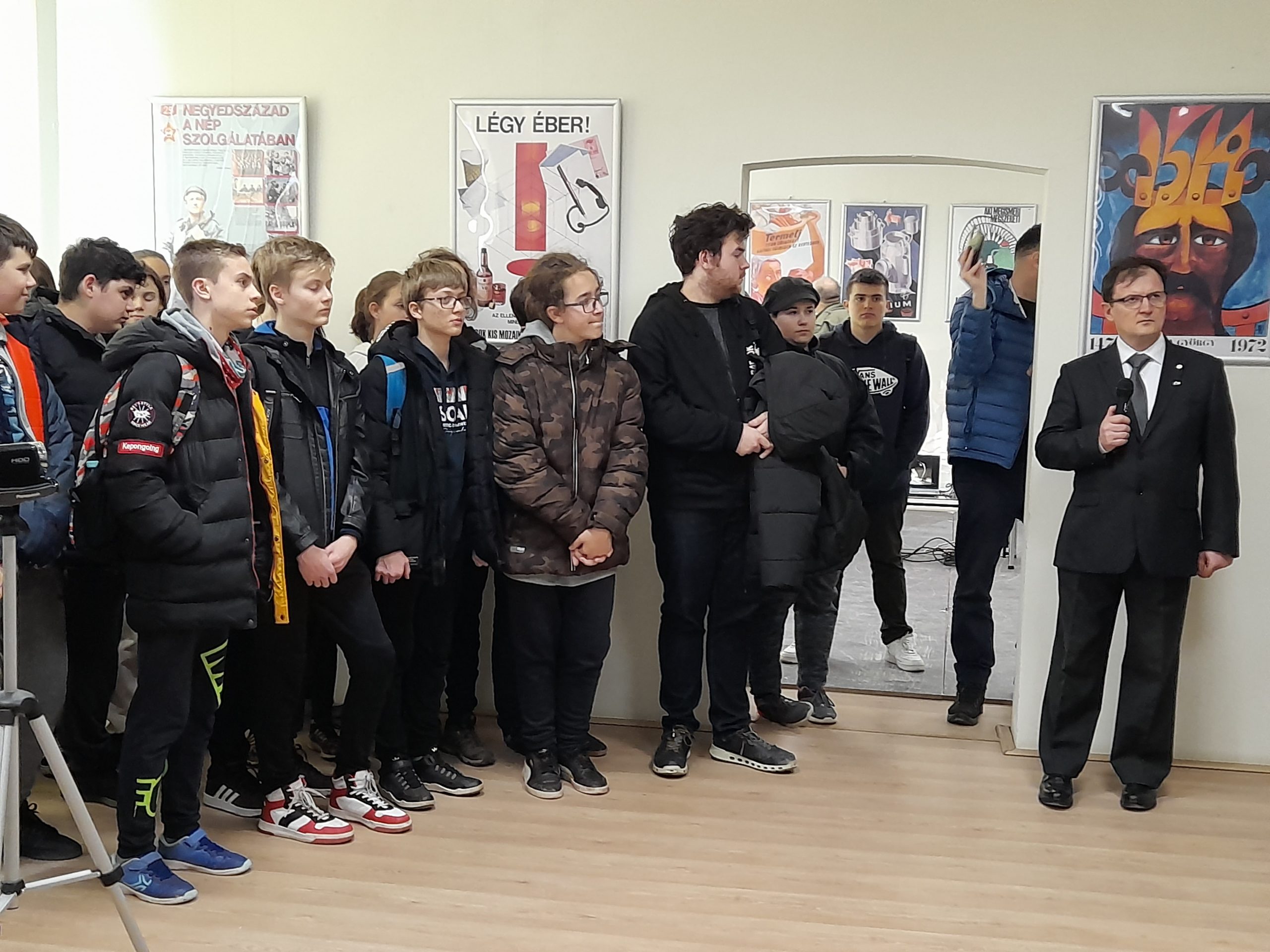 AUDIO/Reportaj de la vernisarea expoziției „Pete de culoare ale cotidianului afișat în epoca lui János Kádár (1957 – 1989)”; impresii de la vizitatori, elevi ai Liceului Teoretic „Bartók Béla”, Timișoara, 10 martie 2023):
