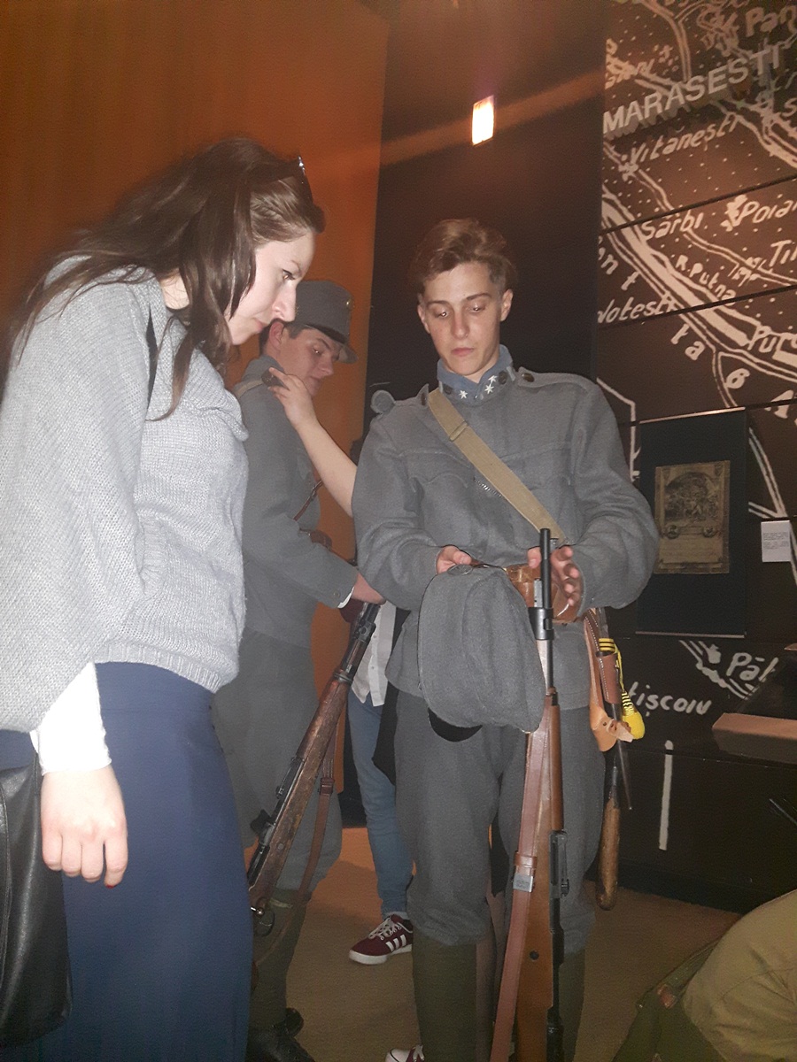 Vizitatorii au putut vedea şi o prezentare de uniforme şi echipamente militare din timpul Primului Război Mondial. Arădenii de toate vârstele şi-au făcut fotografii cu cei militarii, dar şi cu armele expuse.