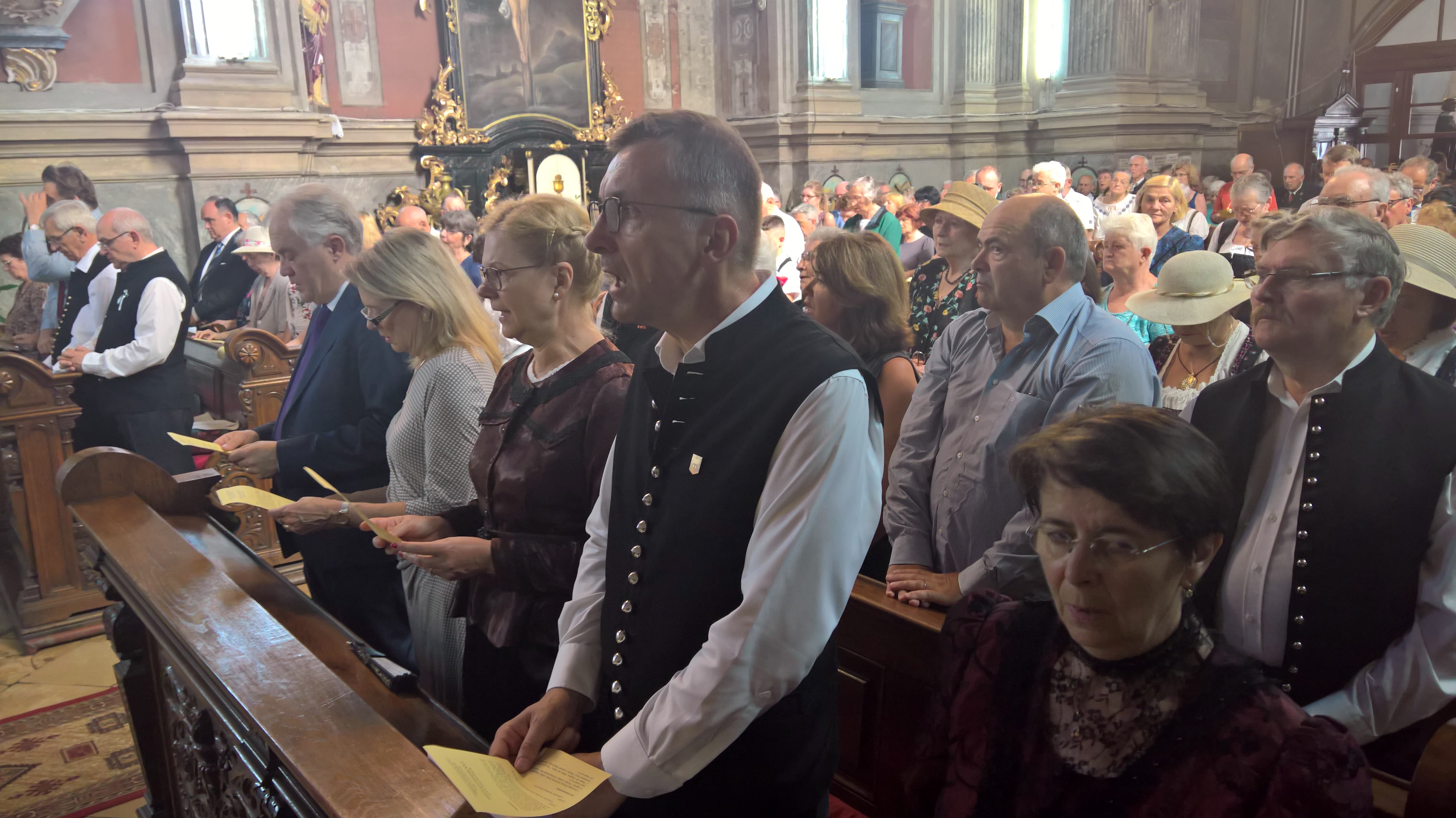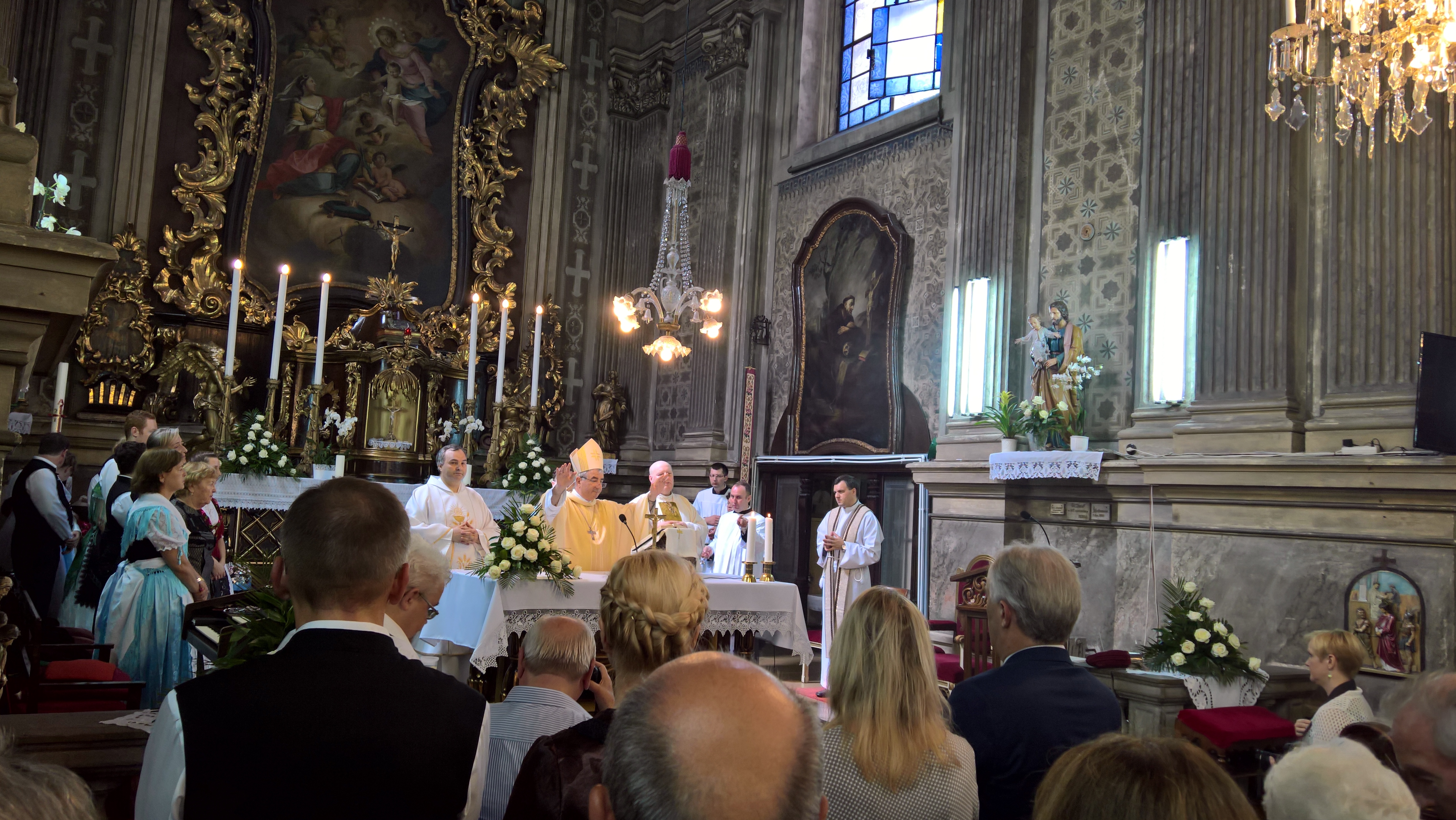 Perechile în port popular s-au întâlnit, dimineaţă, la biserica romano-catolică din cetate unde au asistat la o liturghie în limba germană celebrată de Episcopul Iosif Pal. Apoi, s-a plecat în marş prin centrul Timişoarei.