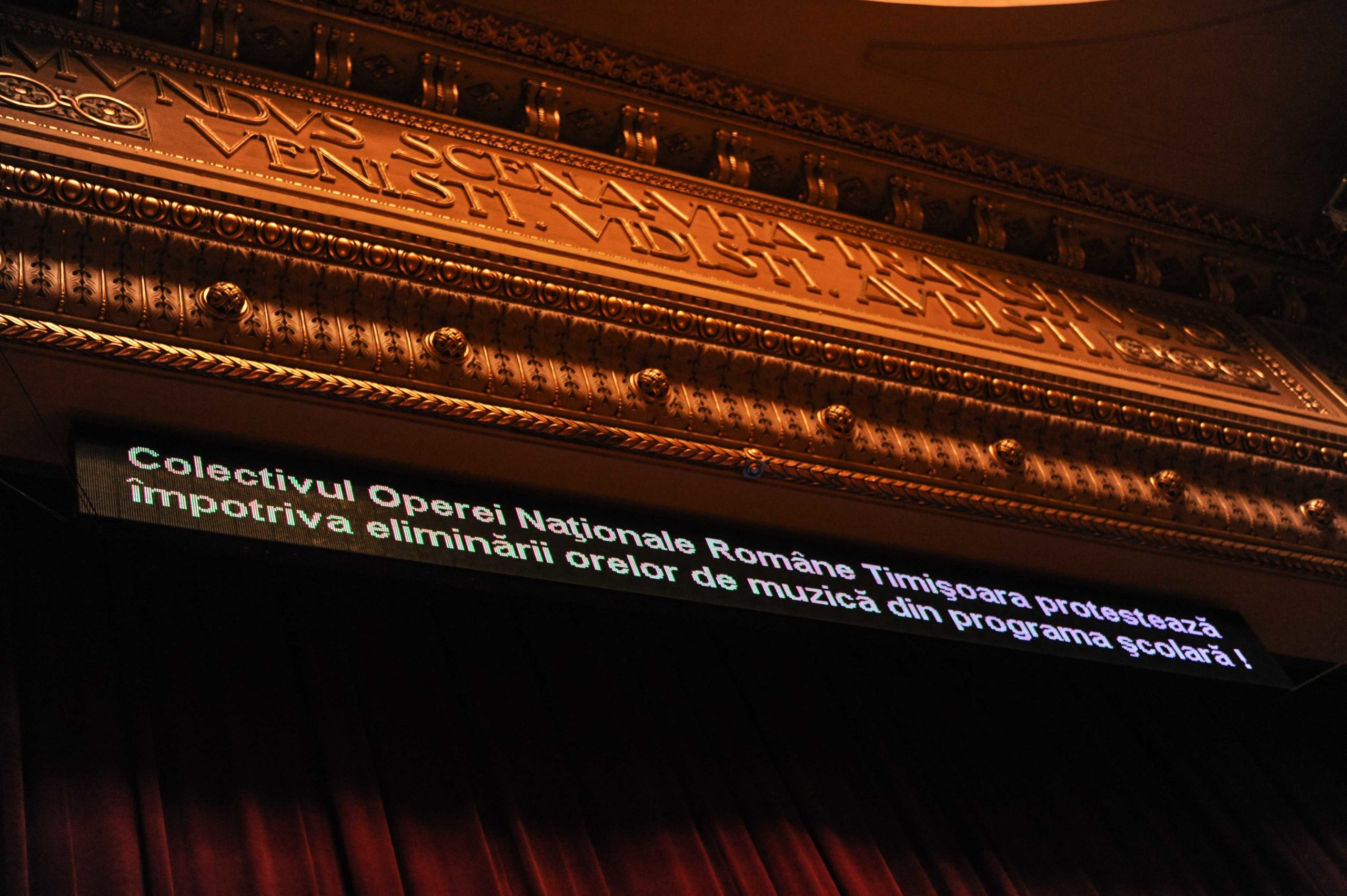 Pe ecranul de pe scena Operei a fost afişat un mesaj împotriva eliminării orelor de muzică. Spectatorii au fost îndemnaţi să să adune semnături pentru ca elevii să studieze, în continuare, Muzica şi Latina, dar şi pentru ca numărul orelor de Limba şi Literatura Română să nu fie redus.