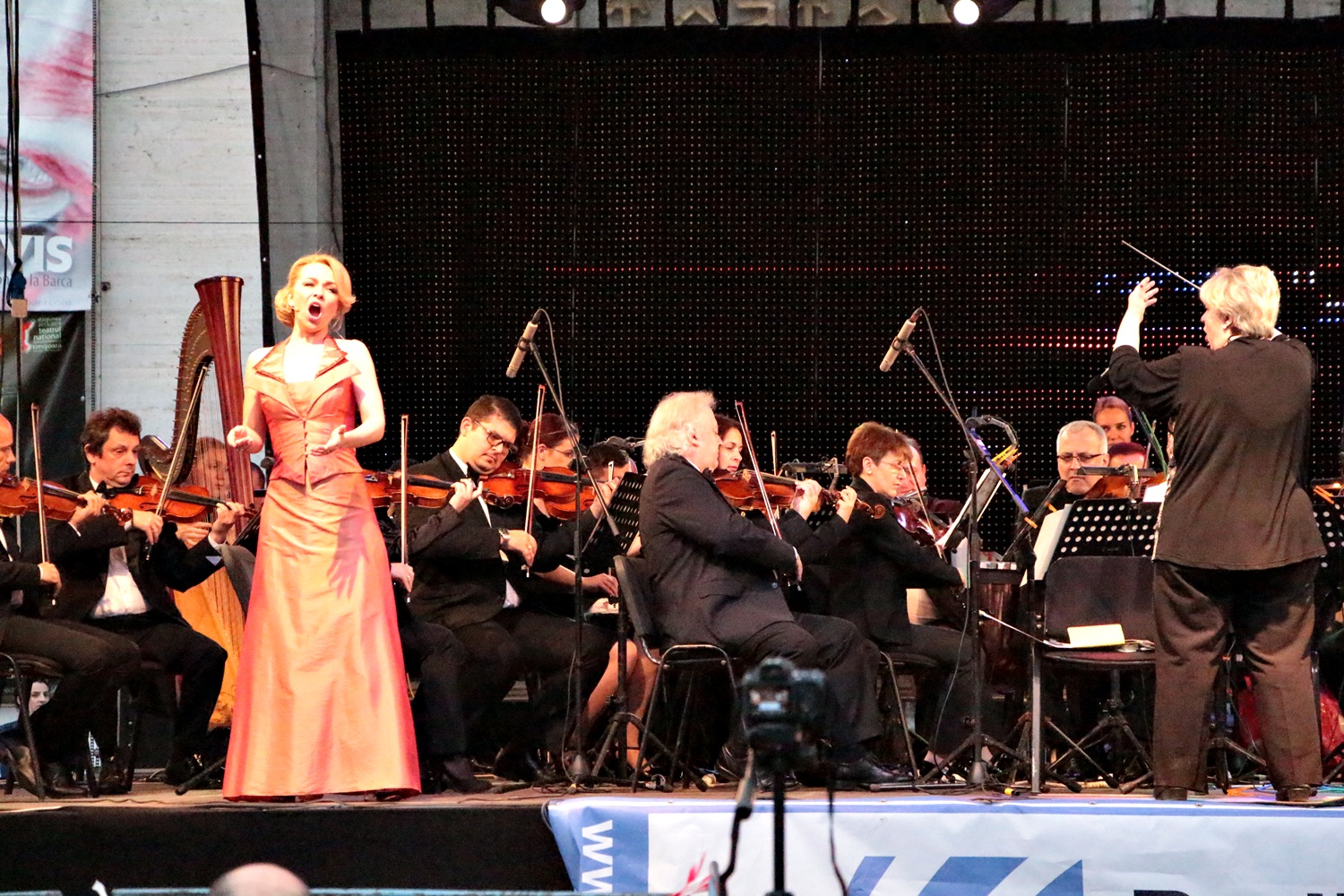 Cei mai îndrăgiți soliști ai Operei Române din Timișoara au urcat pe scena amplasată în Piața Victoriei, în aplauzele timișorenilor care s-au bucurat de arii celebre din opere și operete.