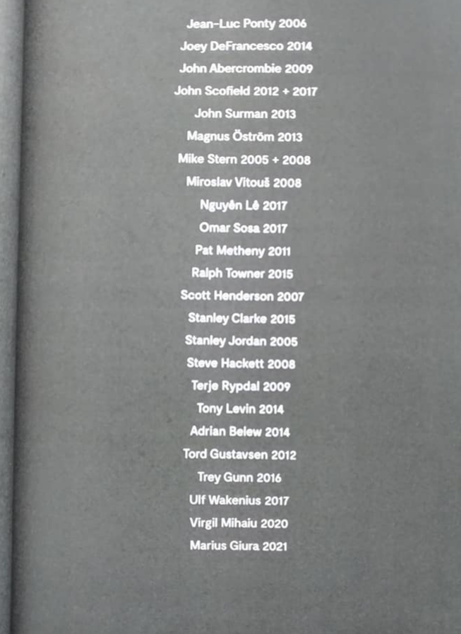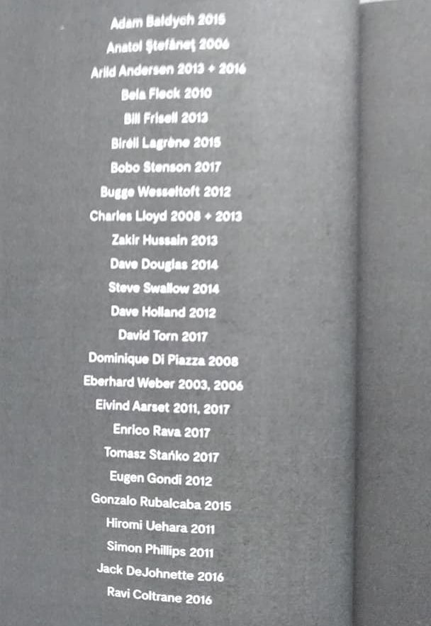 RALPH  TOWNER, GLENN  MOORE, PAUL MCCANDLESS, EBERHARD  WEBER, JOHN  SURMAN, COURTNEY  PINE, STANLEY  JORDAN, ESBJORN  SVENSSON, NILS  PETTER MOLVAER, ARILD  ANDERSEN, MISHA  ALPERIN, BOBO STENSON, AVISHAI  COHEN, JEAN – LUC  PONTY, ULF  WAKENIUS, EIVIND  AARSETH, MIKE  STERN, NGUYEN  LE, SCOTT  HENDERSON, VIKTORIA  TOLSTOY, MANU  KATCHE, CHARLES  LLOYD, JASON  MORAN, MIROSLAV  VITOUS, LARS DANIELSSON, LESZEK  MOZDZER, DOMINIQUE  DI  PIAZZA, JOHN  ABERCROMBIE, TERJE  RYPDAL, NIK  BARTSCH, MARCIN  WASILEWSKI, DAN  BERGLUND, TRYGVE  SEIM, ZAKIR  HUSSAIN, TRILOK  GURTU, BELA  FLECK, EDGAR  MEYER, HIROMI  UEHARA, JOHN  SCOFIELD, SLAWEK  JASKULKE, DAVE  HOLLAND, ENRICO RAVA, TOMASZ STANKO, STANLEY CLARKE, KEVIN  EUBANKS, CRAIG  TABORN, TORD  GUSTAVSEN, BUGGE  WESSELTOFT, NASHEET  WAITS, IIRO RANTALA, TREY GUNN, TONY LEVIN, ADRIAN BELEW, JOEY DEFRANCESCO, KURT ROSENWINKEL, SVANTE HENRYSSON, JOE LOVANO, și alții.