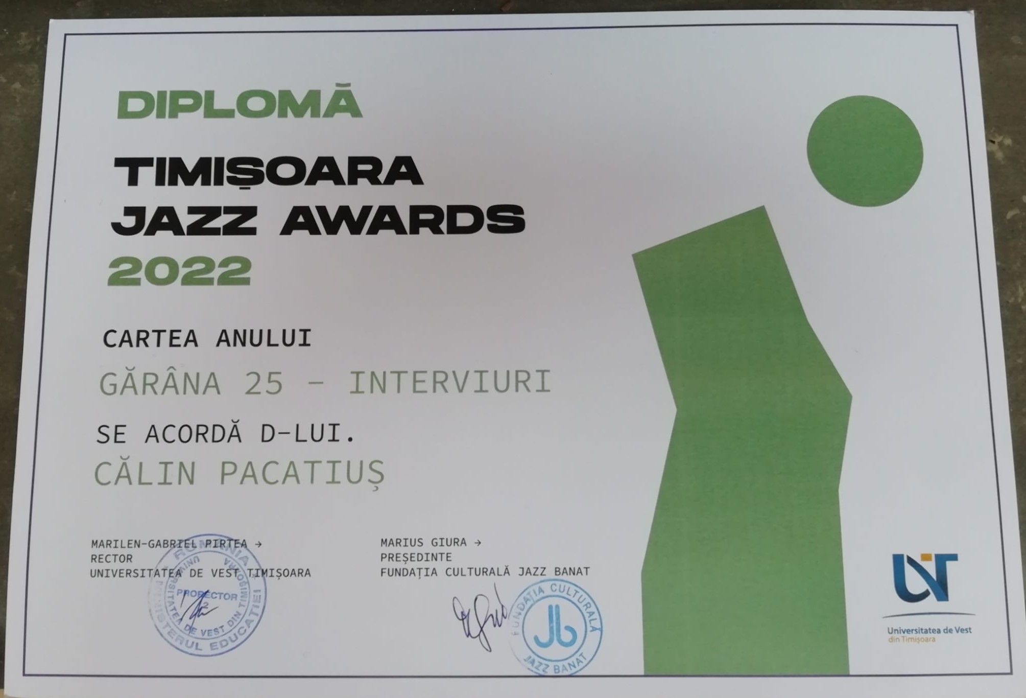„CARTEA ANULUI 2022” este volumul „Gărâna Jazz 25. Interviuri”, autor Călin Pacatiuș, premiu acordat de Fundaţia Culturală „Jazz Banat”.