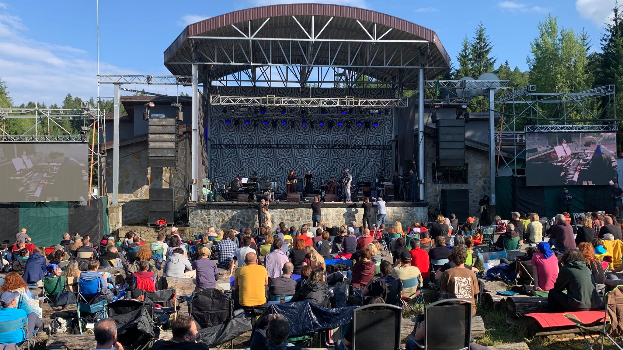 Şi cea de-a doua zi de festival la Gărâna Jazz 2025 a stat sub semnul capriciilor vremii. Scurte reprize de ploaie au alternat cu vreme frumasă şi însorită, însă după-amiază spre seară cerul s-a limpezit. Iubitorii genului au apărut în număr mai mare decât în prima zi, iar Poiana Lupului s-a umplut destul de repede.