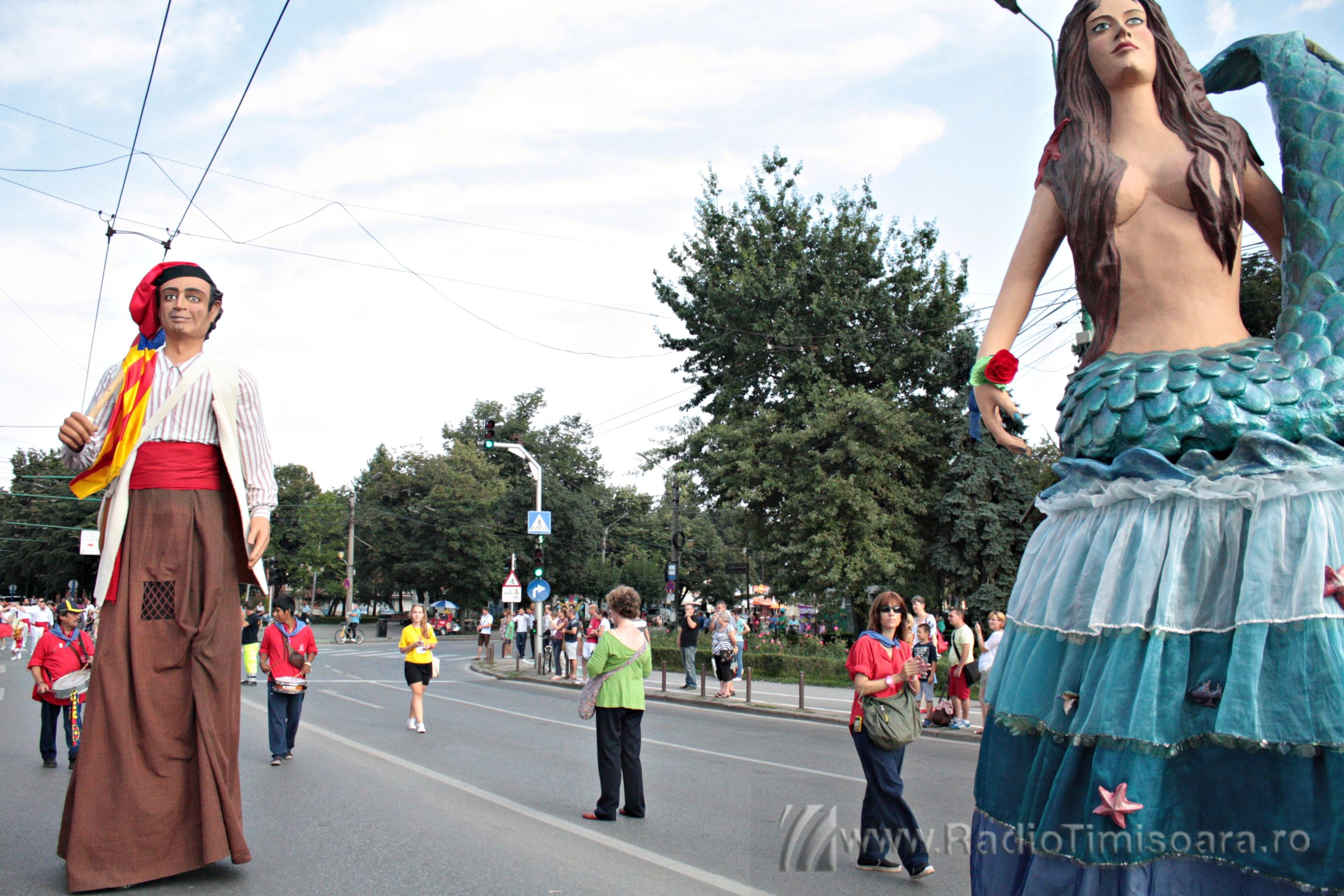 Sute de timișoreni s-au aflat sâmbătă seara pe traseul paradei giganților, care au parcurs străzile C.D.Loga, Mărășești, bulevardul Republicii și Piața Victoriei. Păpușile gigant au străbătut centrul orașului pe ritmuri tradiționale catalane, însoțite de demonstrații de petarde.