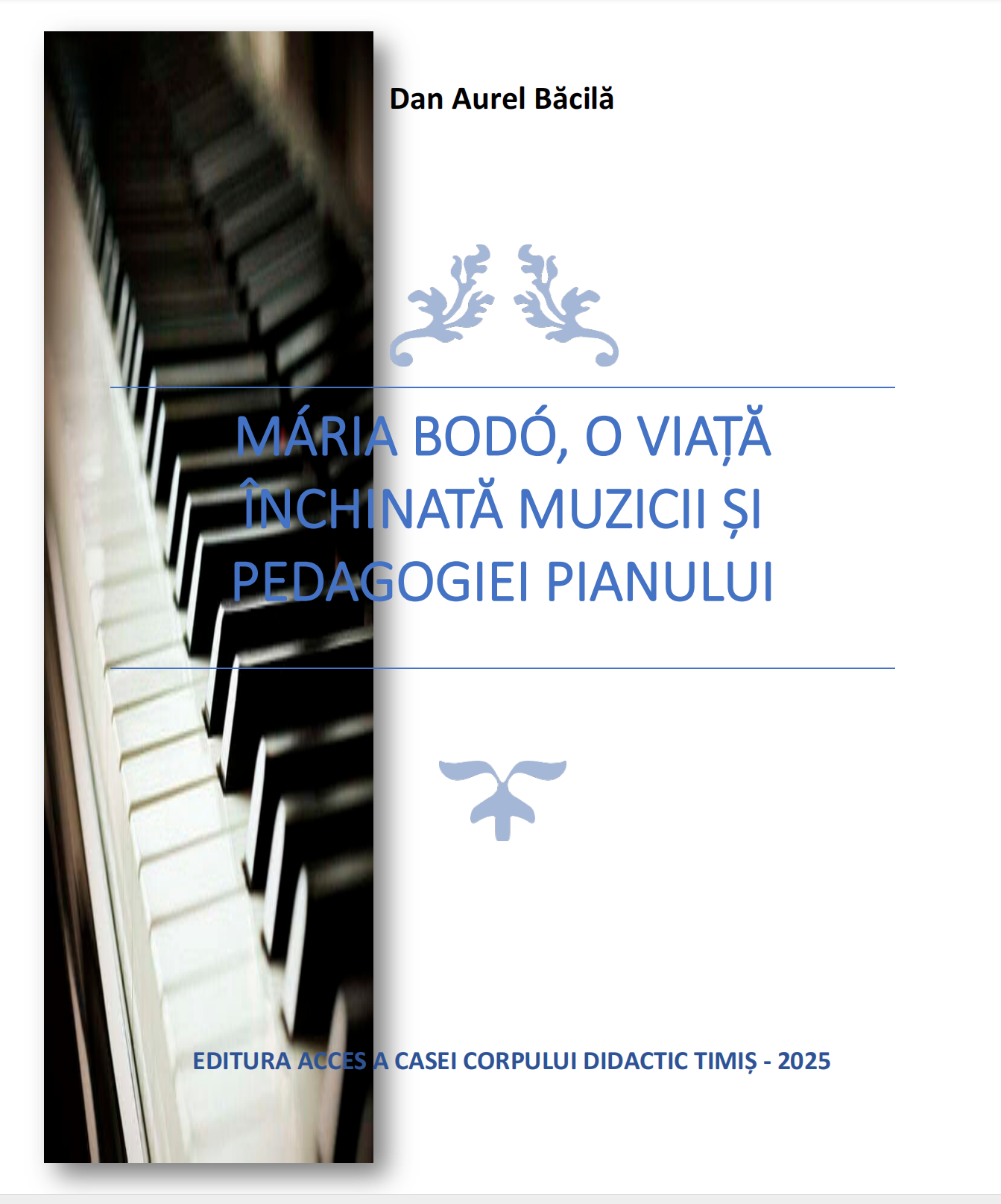 Monografia „MÁRIA BODÓ, O VIAȚĂ ÎNCHINATĂ MUZICII ȘI PEDAGOGIEI PIANULUI”, semnată de prof. dr. Dan Aurel Băcilă, este publicată (octombrie 2025), la Editura Acces a Casei Corpului Didactic Timiș.