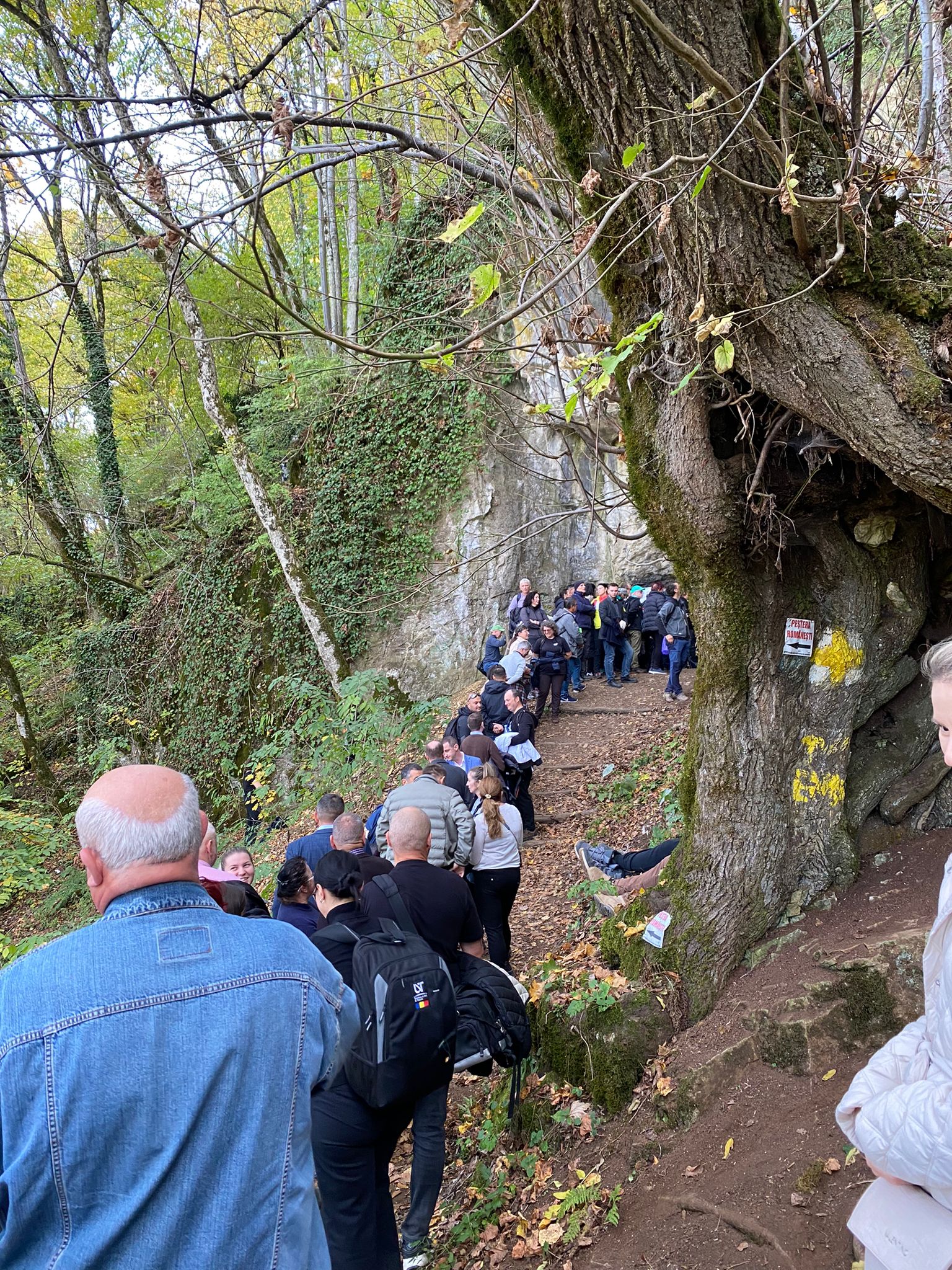 Pentru a ajunge la peșteră, vizitatorii au pornit pe o potecă marcată din satul Românești, traseul durând aproximativ o oră.