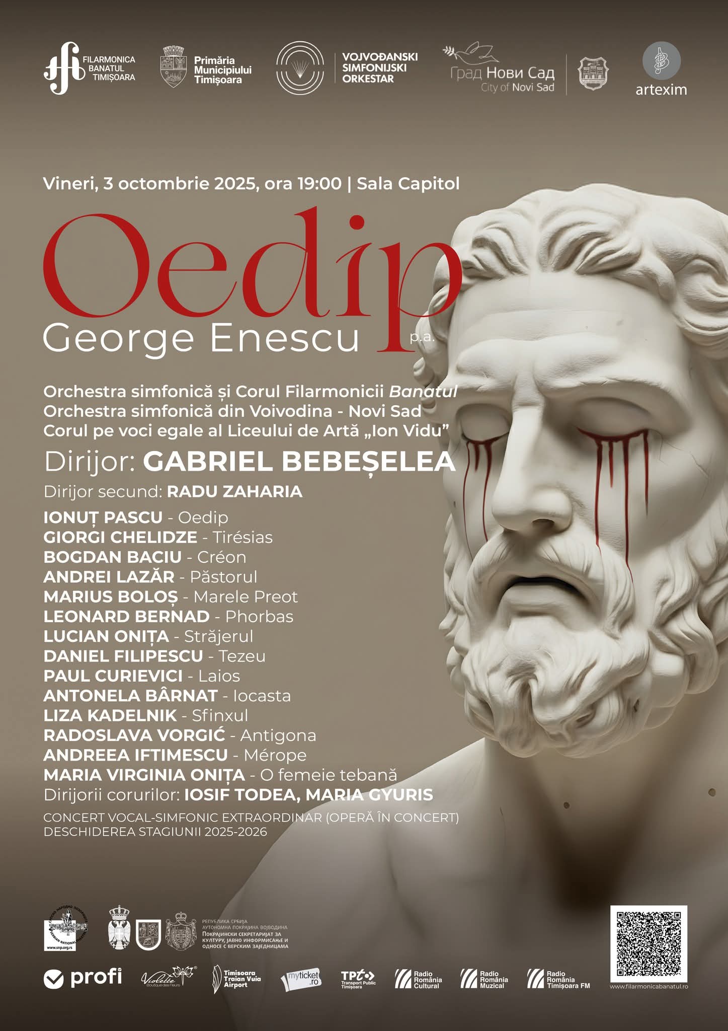 Filarmonica „Banatul” Timișoara deschide stagiunea 2025-2026 cu “Œdipe” de George Enescu, operă în concert, în primă audiție.