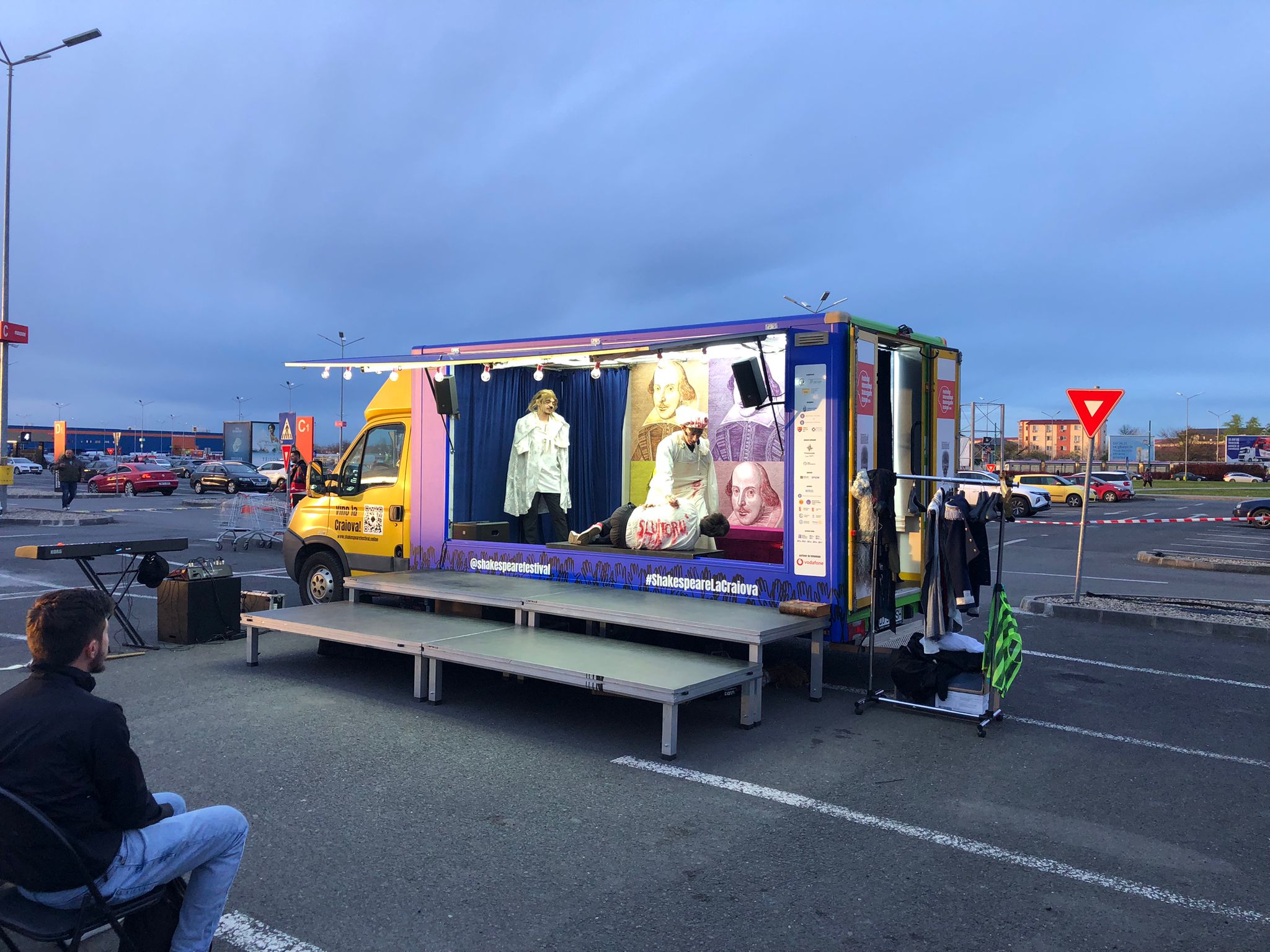 Caravana Shakespeare a ajuns, joi seara, la Timișoara unde a fost prezentat în premieră spectacolul „Operele complete ale lui Shakespeare”.