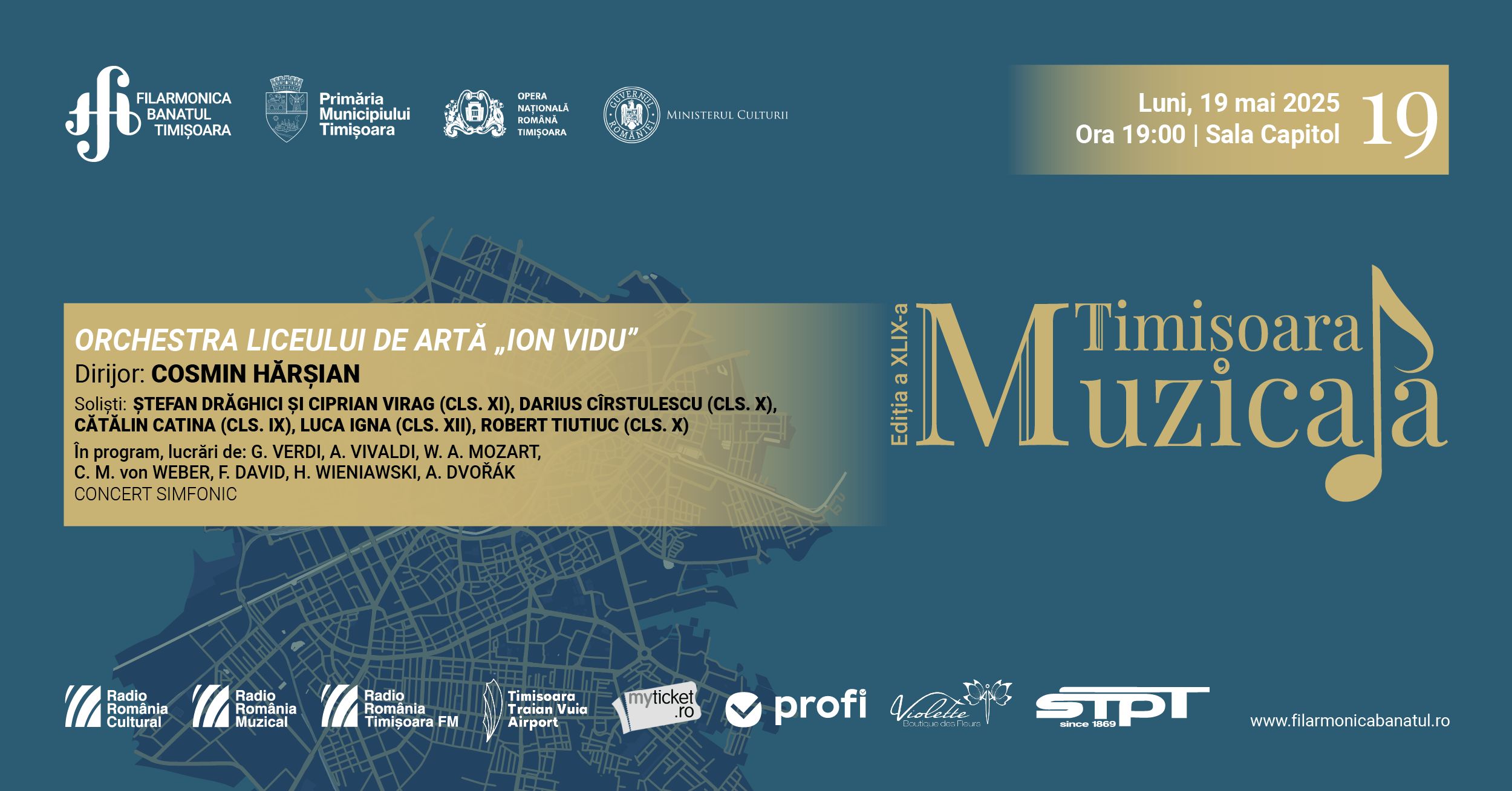 Concertul simfonic al Orchestrei Liceului de Artă „Ion Vidu”, sub bagheta maestrului Cosmin Hărșian, va fi susținut pe scena Festivalului Internațional „Timișoara Muzicală”, ediția a XLIX-a, 2025.
