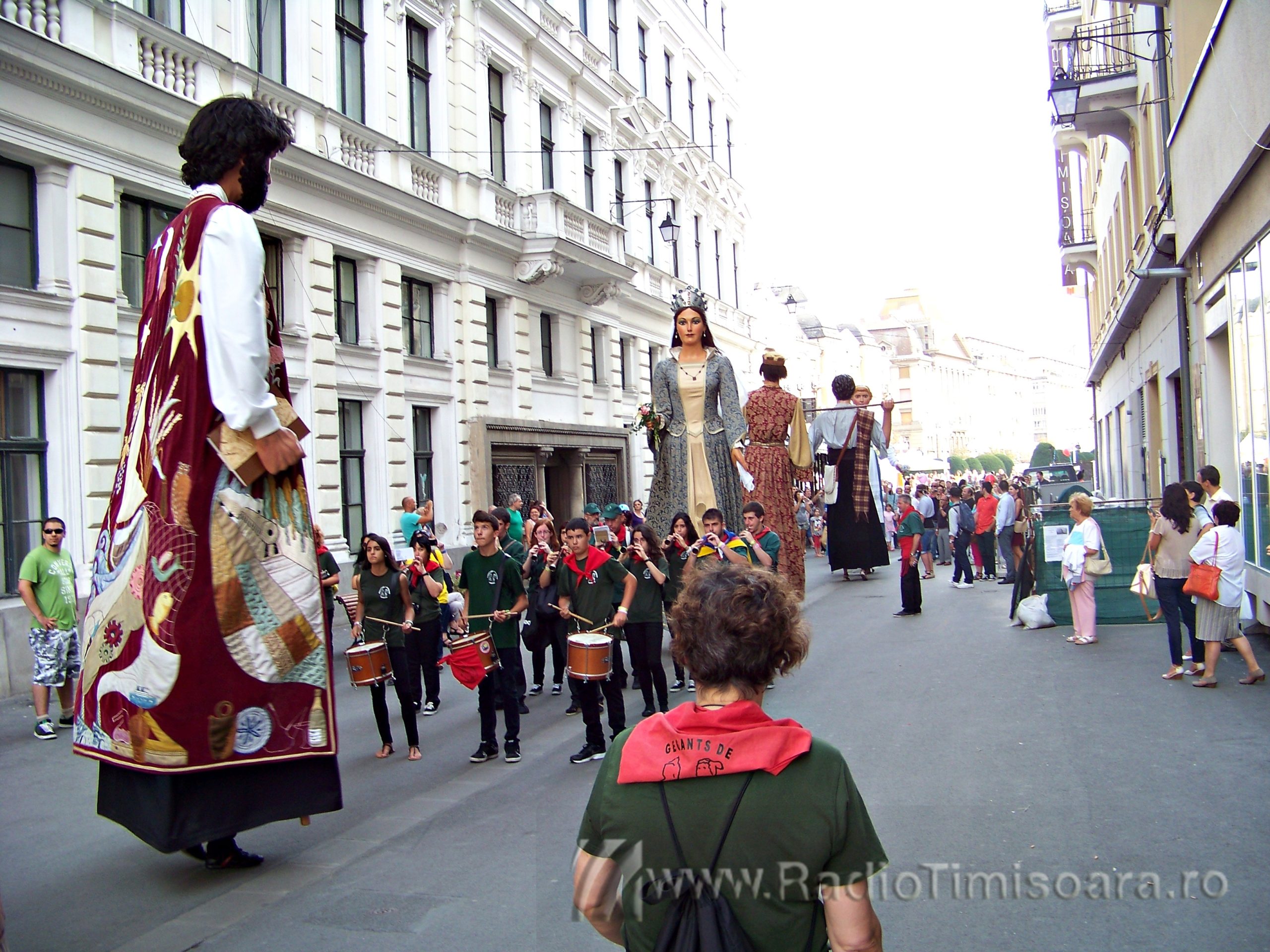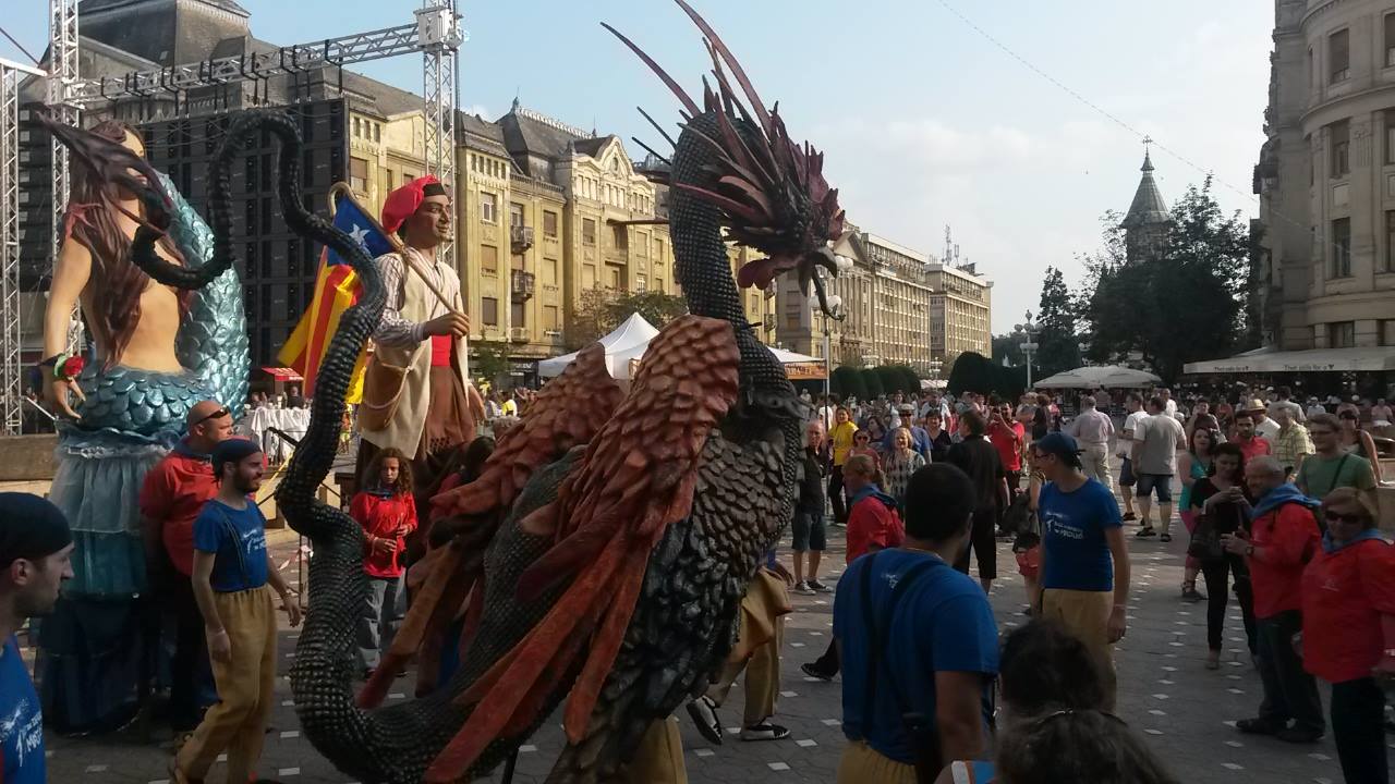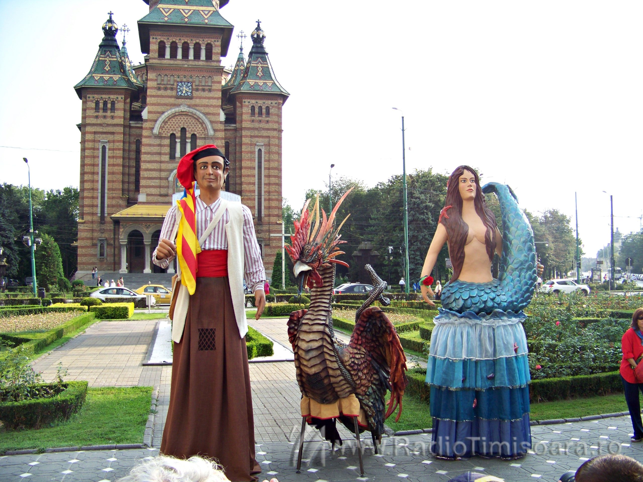 Parade cu giganţi în centrul Timişoarei. A început Festivalul Catalan FOTO