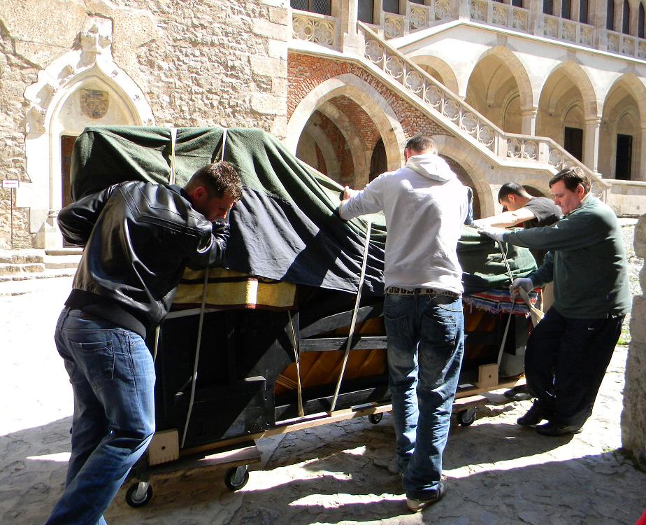 În fiecare din aceste oraşe pianul soseşte cu o maşină pusă la dispoziţie de Senia Music, este coborât de o echipa specializată, montat şi acordat.