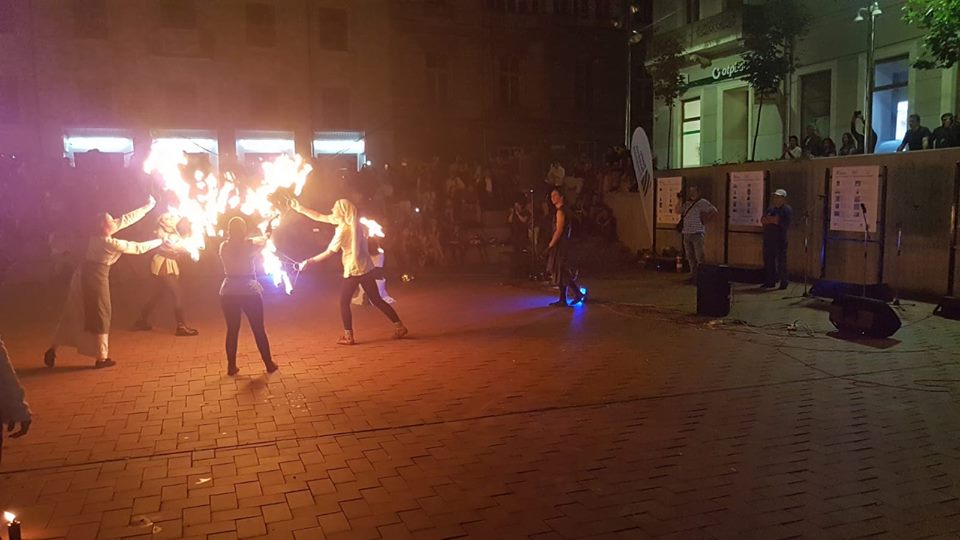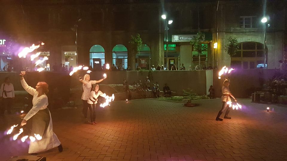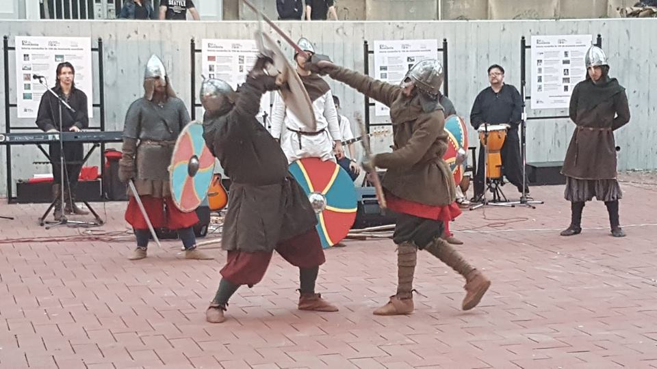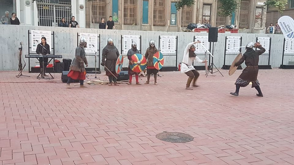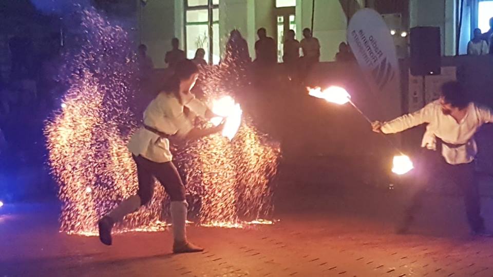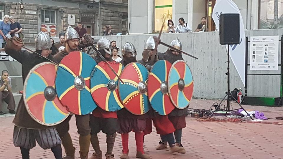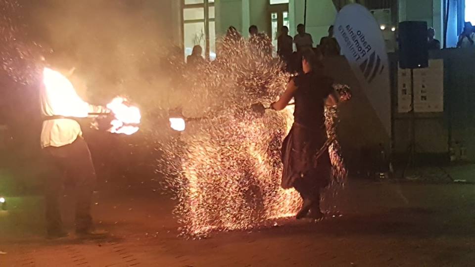 Publicul numeros a aplaudat aseară, spectacolul sincretic oferit de Frăţia Corbilor, Deep6 Project şi formaţia Peregrinii, care au reconstituit simbolic, în amfiteatrul din Piaţa Sf. Gheorghe, pagini de istorie prin coregrafii medievale, scene de bătălie, muzică şi un show incendiar de lumină şi foc.