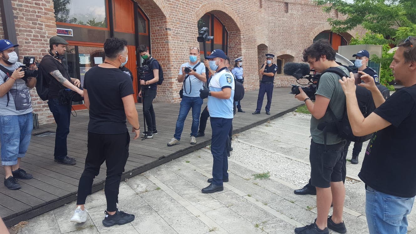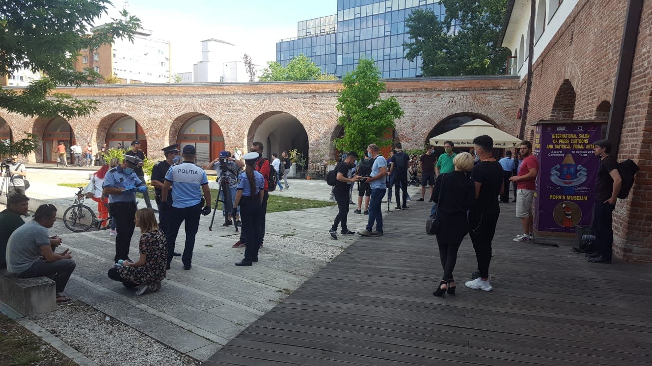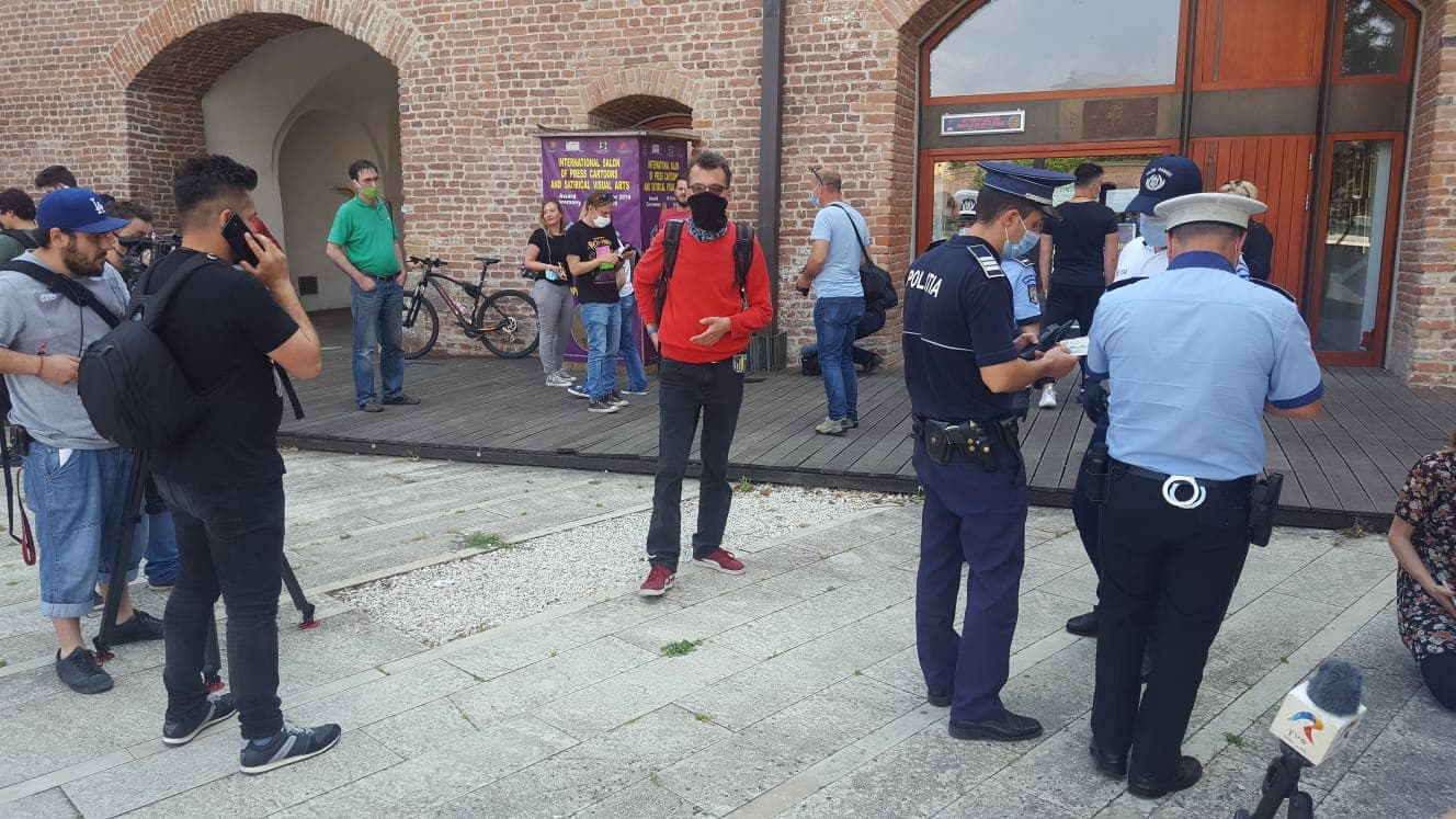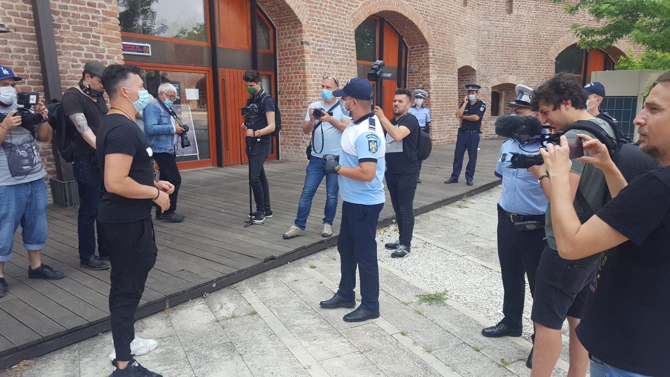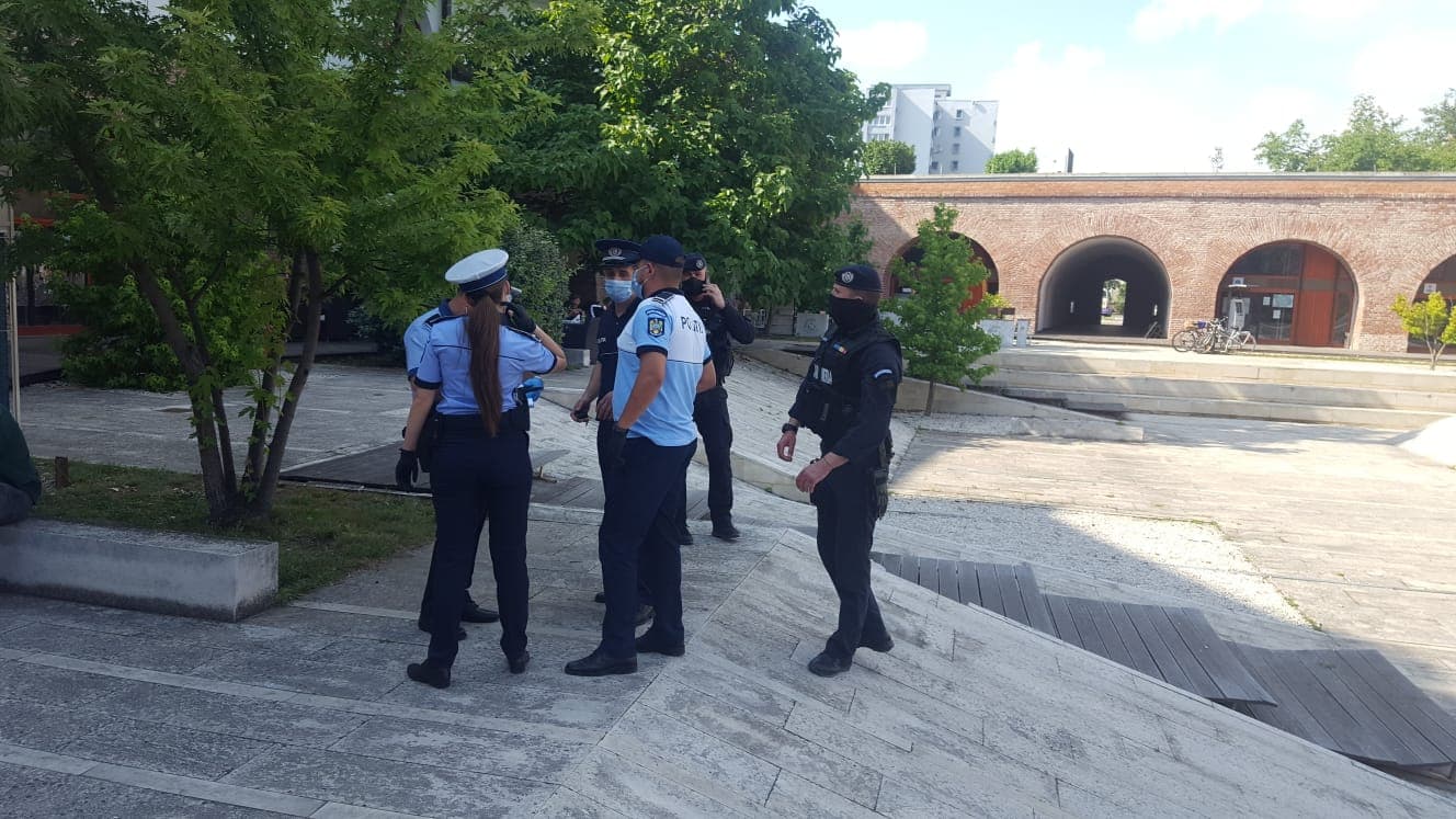 În piațeta Bastionului Theresia și-au făcut apariția și două echipaje de poliție și jandarmi și au verificat actele de identitate ale tuturor celor prezenți.