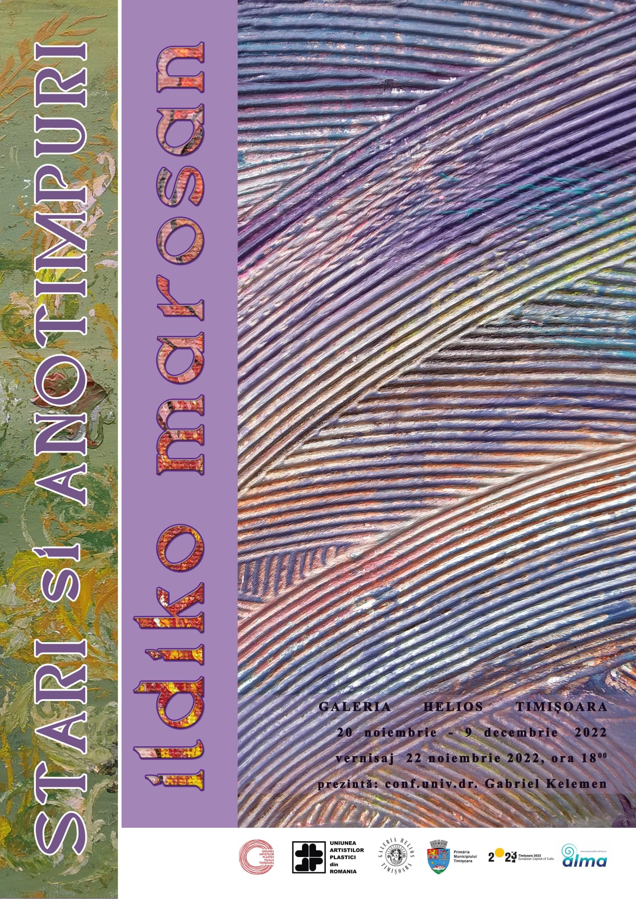 Câteva zeci de lucrări de pictură realizate de Ildikó Maroşan-Micota, artist vizual din Timișoara, sunt reunite în cadrul expoziției „STĂRI ȘI ANOTIMPURI”, care va fi vernisată la Galeria „Helios” din Timișoara, marți, 22 noiembrie 2022, începând cu ora 18,