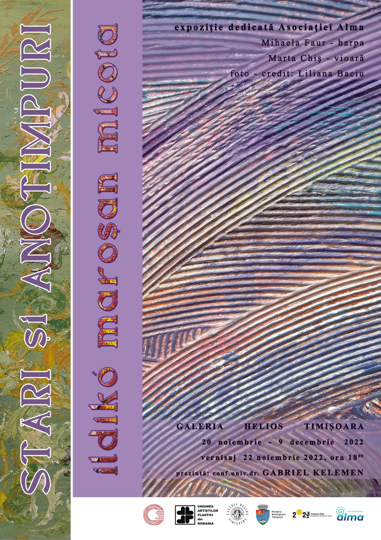 Vernisajul expoziției „Stări și Anotimpuri” va fi marți, 22 noiembrie 2022, începând cu ora 18, la Galeria „Helios”. Vom oferi, împreună cu Asociația Alma, și câteva momente plăcute de destindere, prin muzică.