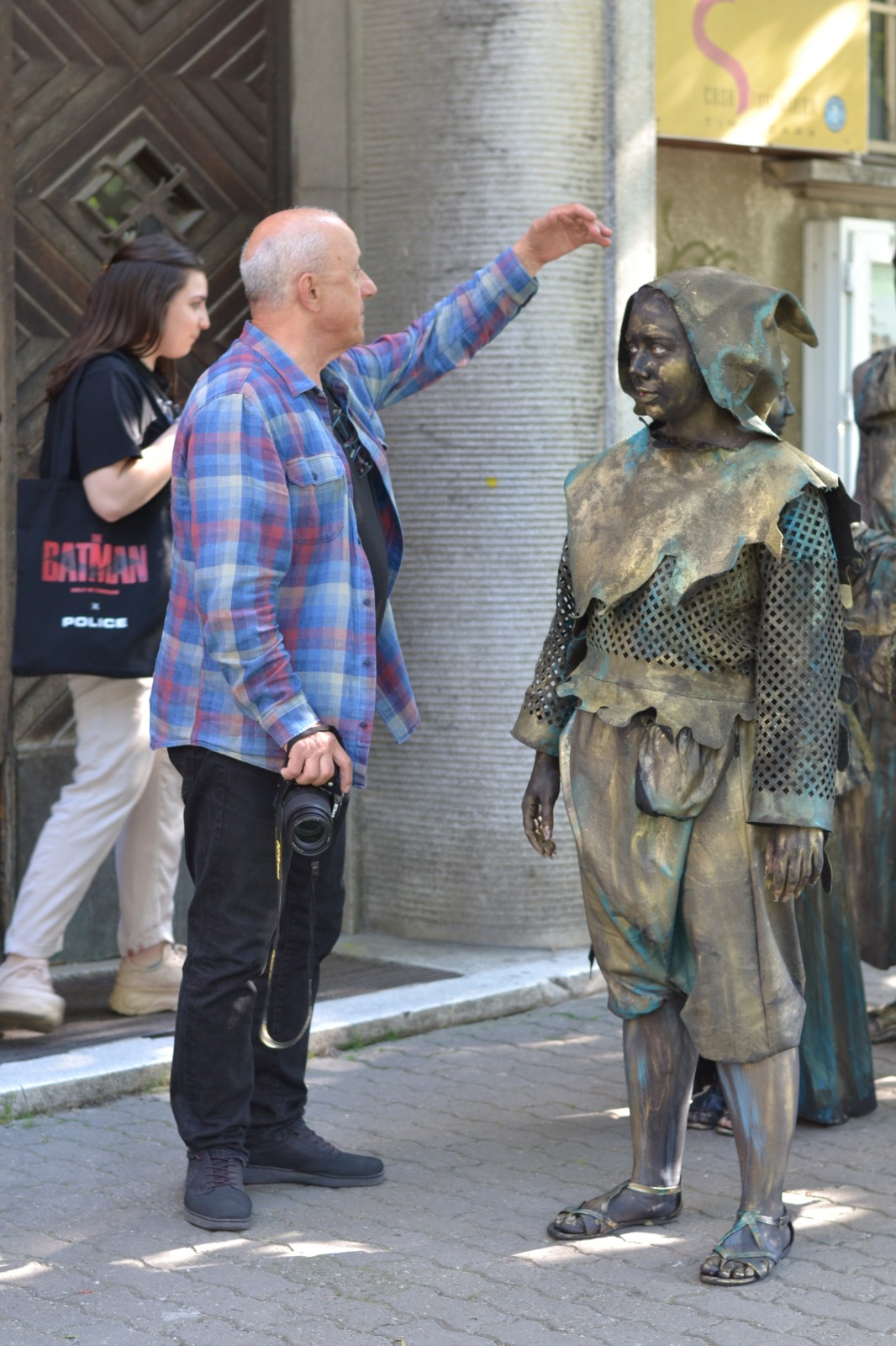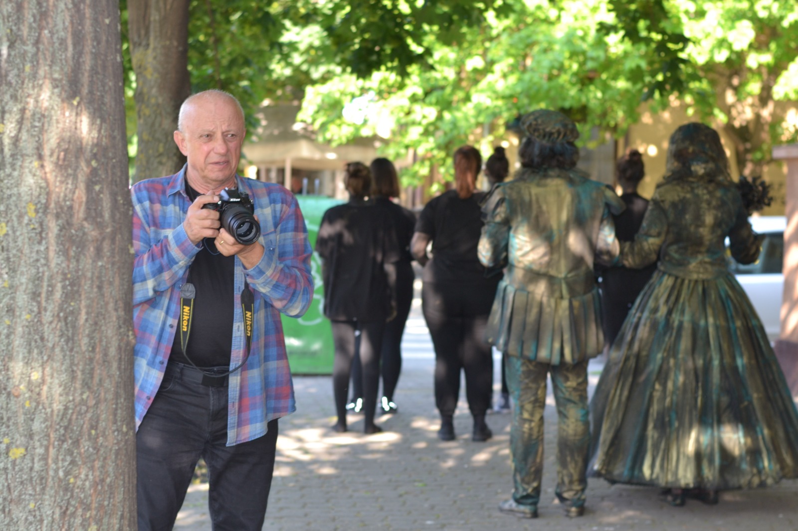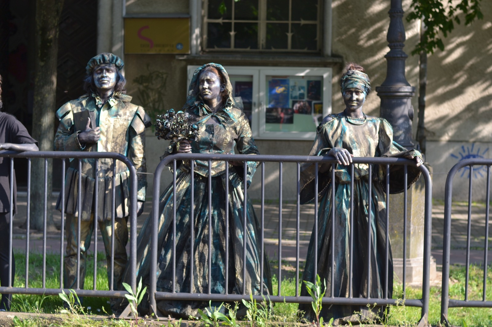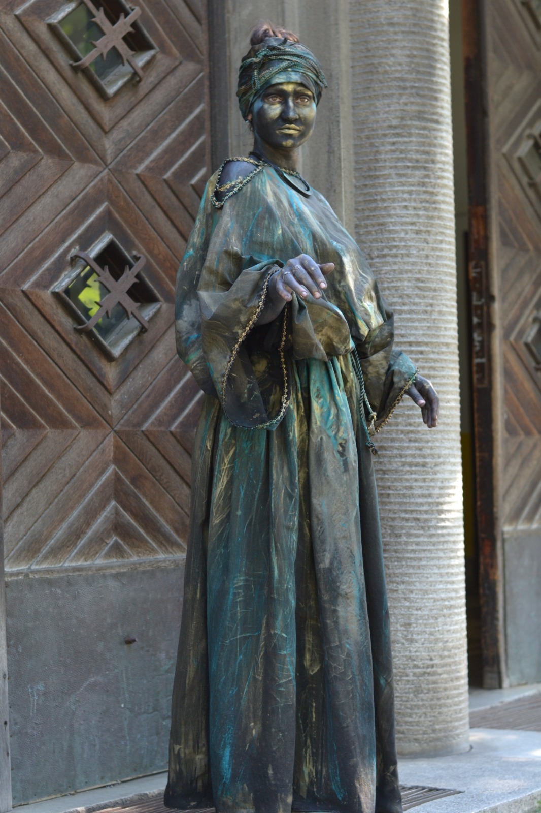Am aplicat principiile artei sincretice, care este teatrul. Am folosit un spaţiu pe care l-am definit, inclusiv prin elemente de decor şi de recuzită. Am folosit o „poveste”. Muzica devine un „personaj” important în statuia vivantă care este o formă de discurs teatral nonverbal, discurs de mişcare. Sigur, pe de altă parte, respectăm legile nescrise ale statuii vivante: machiaj pe toată porţiunea de piele vizibilă, costume care definesc iluzia materialităţii pe care am ales-o aici (bronzul), fiecare statuie trebuie să „atârne” două-trei tone, ne mişcăm într-un anume fel, şi numai aşa.