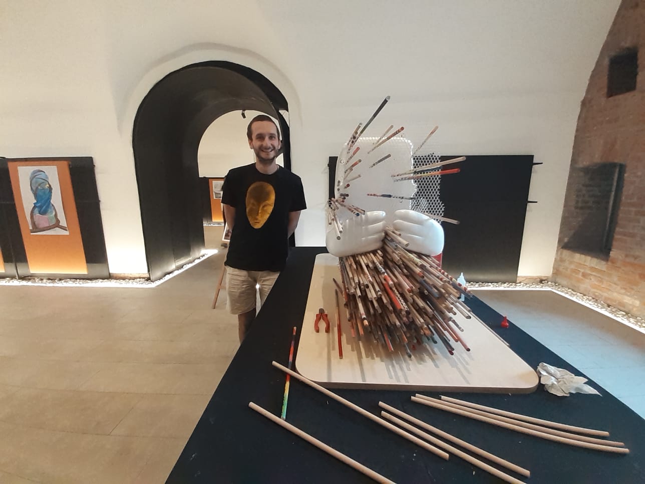 “Atelierul pe care ni l-a facilitat arhitectul Florin Cobuz s-a bucurat de succes, este în strânsă legătură cu expoziția de la Muzeul de Artă și ne bucurăm că foarte mulți dintre cei care au ajuns la noi să participe în mod activ la recrearea acestei sculpturi a Sărutului, au fost și au văzut și expoziția de la Muzeul de Artă a sculptorului Brâncuși. Sunt deja câteva sute de bețe montate. Asta înseamnă că ne apropiem de rezultatul final, dar mai avem săptămână la dispoziție pentru ca tot demersul acesta să se încheie”, spune Ruxandra Adam.