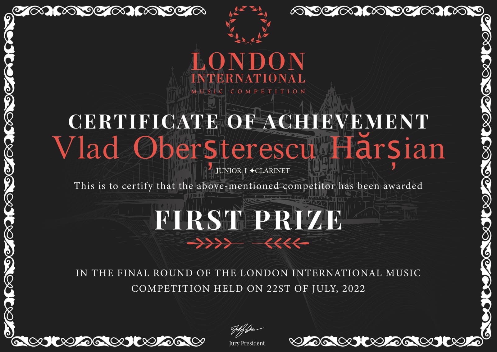 În acest an (mai, iulie, octombrie 2022), Vlad Oberșterescu-Hărșian a câștigat trei competiții muzicale internaționale de nivel înalt: Marele Premiu – „Classical and Folk Music International Competition”, ediția I (Timișoara), Premiul I – „London International Music Competition” (Londra), Premiul I, categoria Young Soloists – 18th International Clarinet Competition „Saverio Mercadante” (Noci-Bari, Italia).