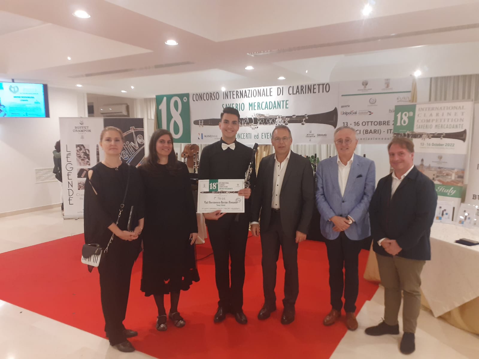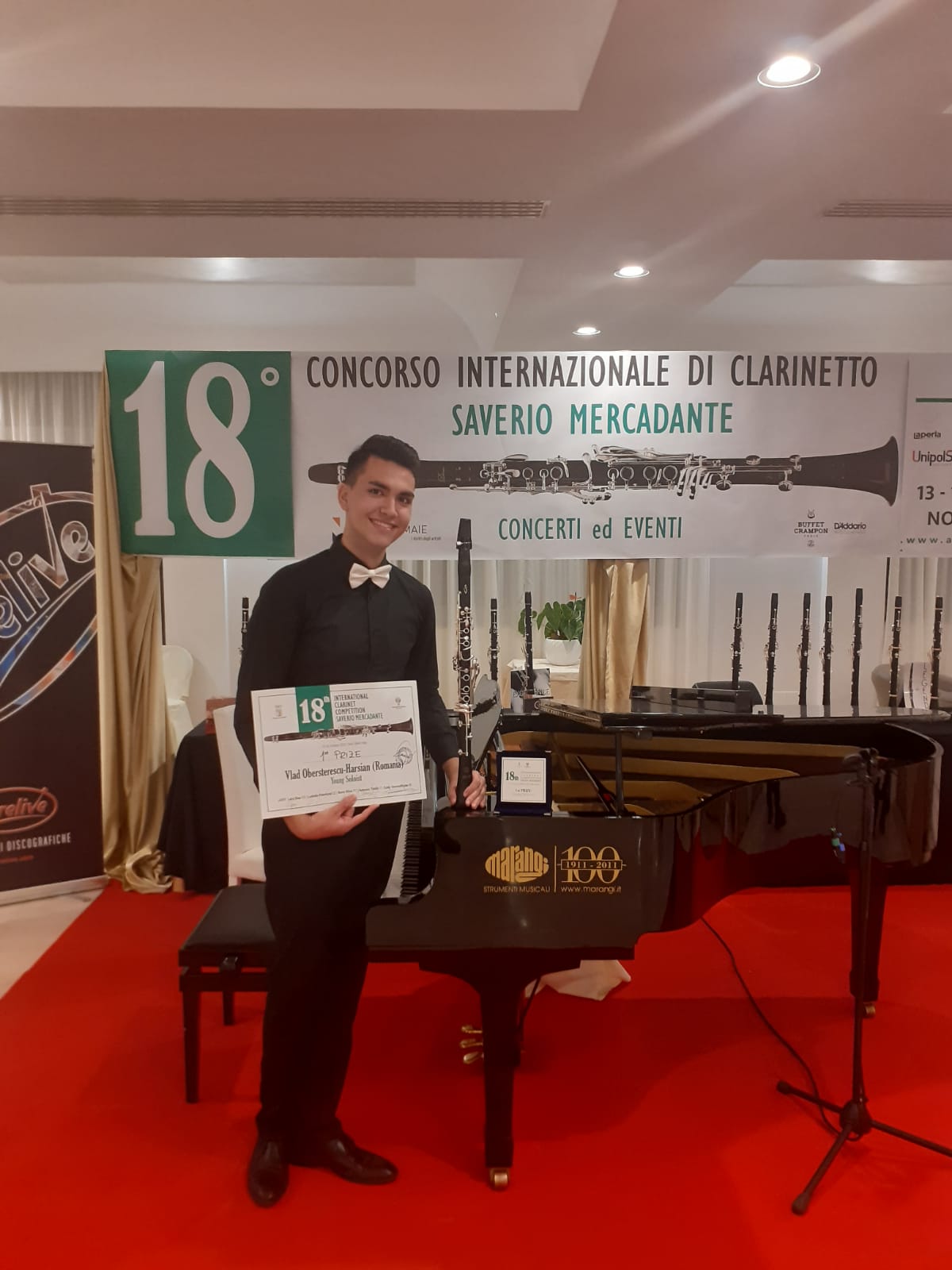 În perioada 13 – 16 octombrie 2022, am avut ocazia de a concura cu unii dintre cei mai buni clarinetiști ai lumii, cu vârsta maximă de cinsprezece ani, și de a interacționa cu alți competitori și artiști internaționali înalt cotați, prin intermediul International Clarinet Competition „Saverio Mercadante”, care s-a desfășurat la Noci (Bari), Italia. Am obținut Premiul I, cu reprezentație în Gala laureaților. Am cunoscut soliști de renume internațional, membri în orchestre de renume și un juriu foarte bine cotat, din cinci țări.