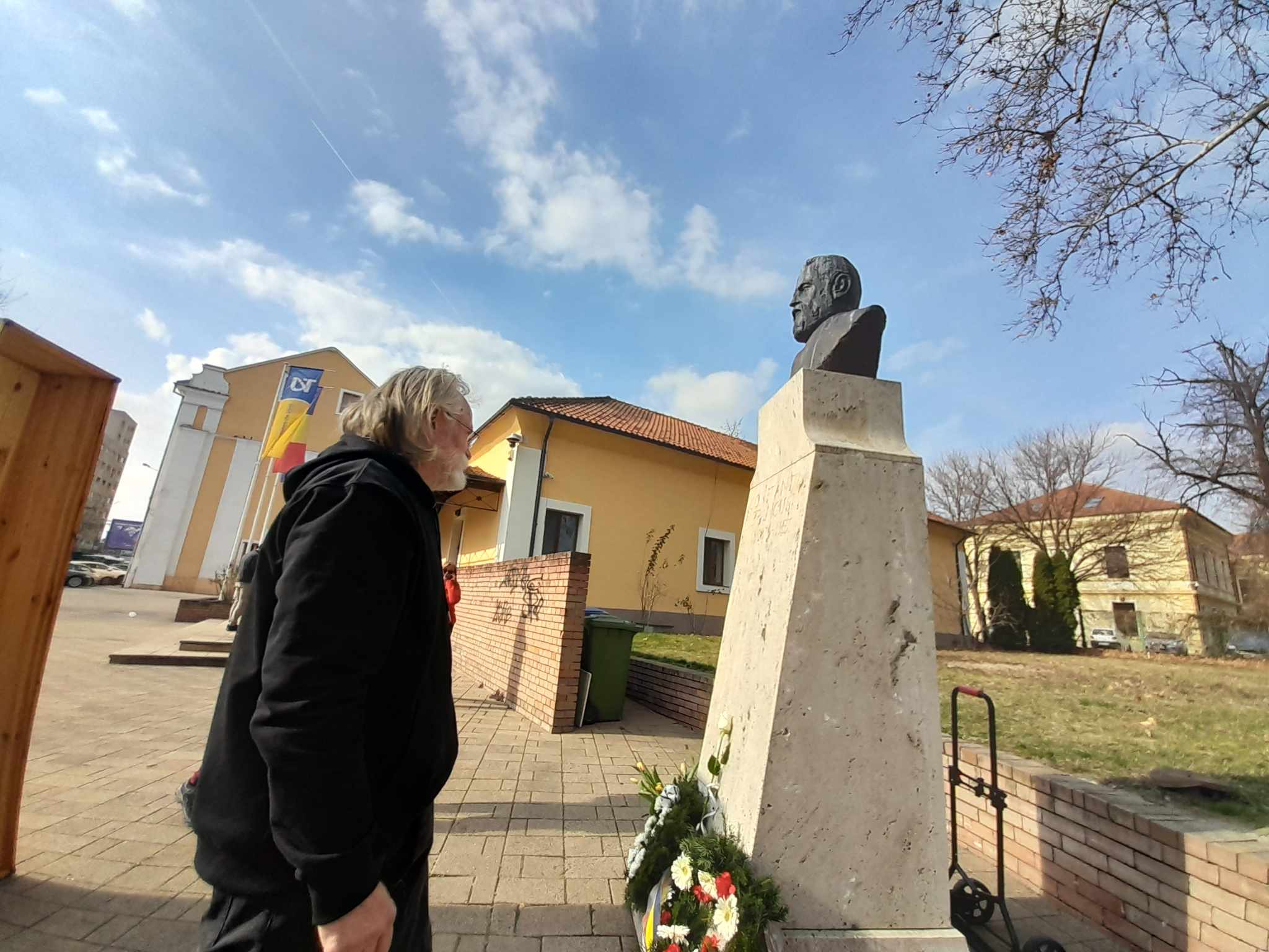 Artistul timișorean Mihai Donici organizează de opt ani evenimente neconvenționale la bustul lui Brâncuși din Timișoara.