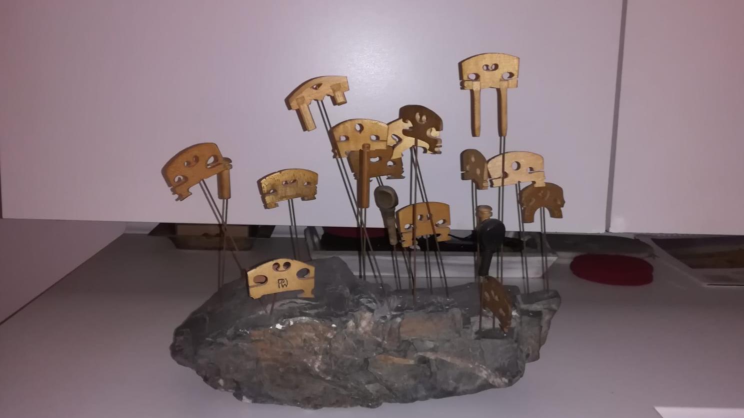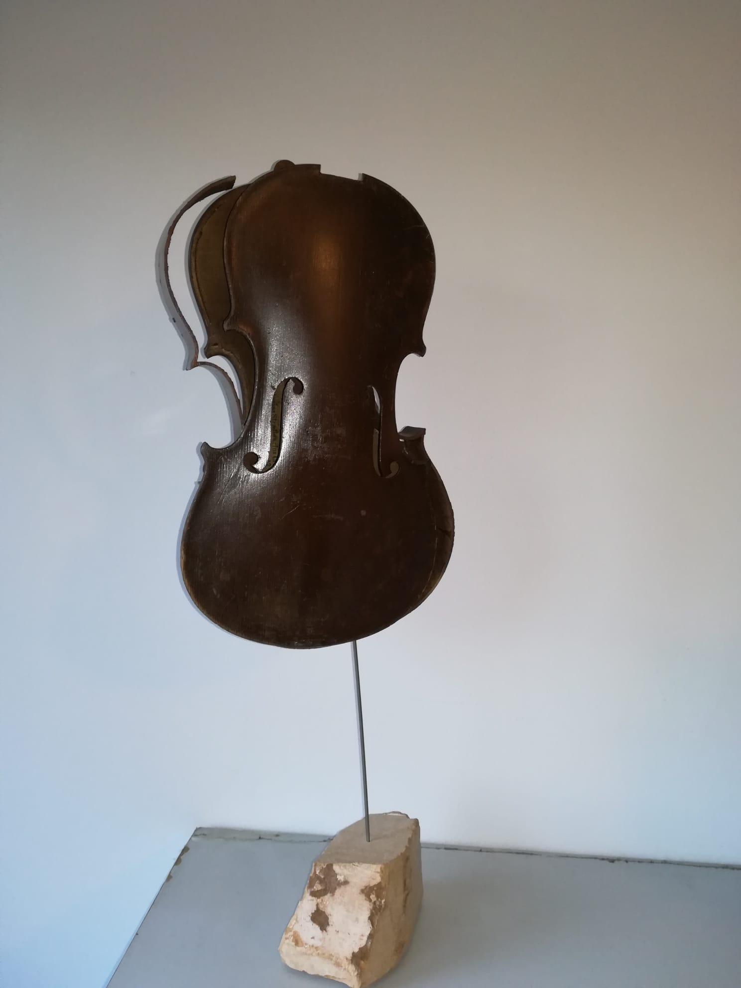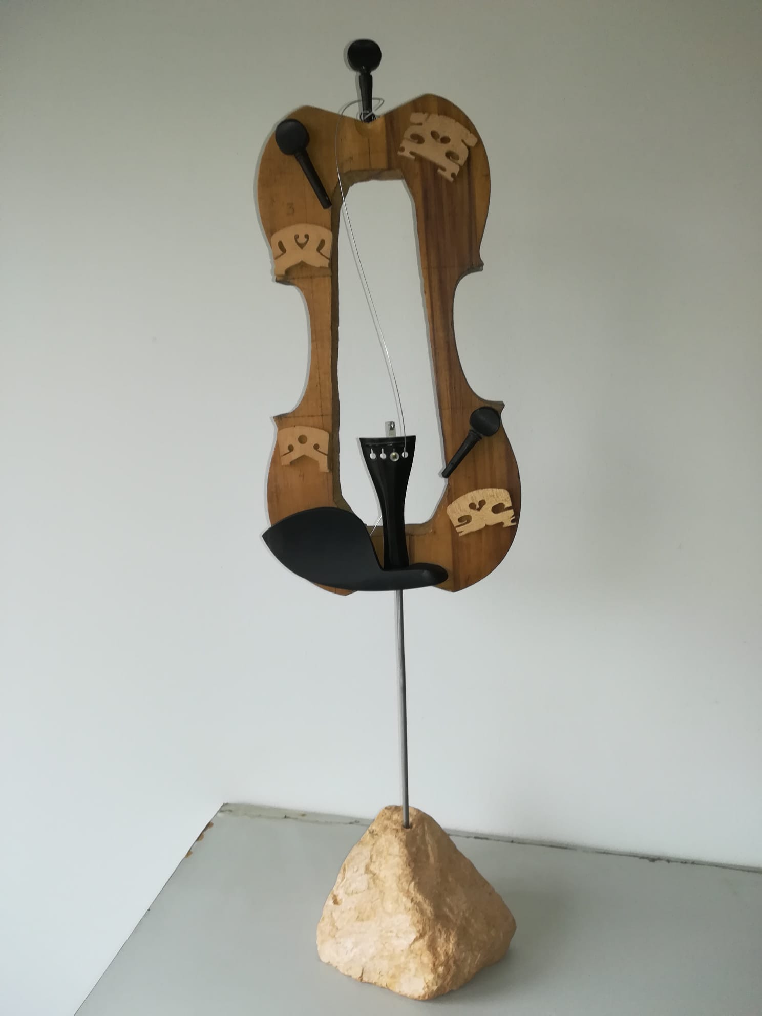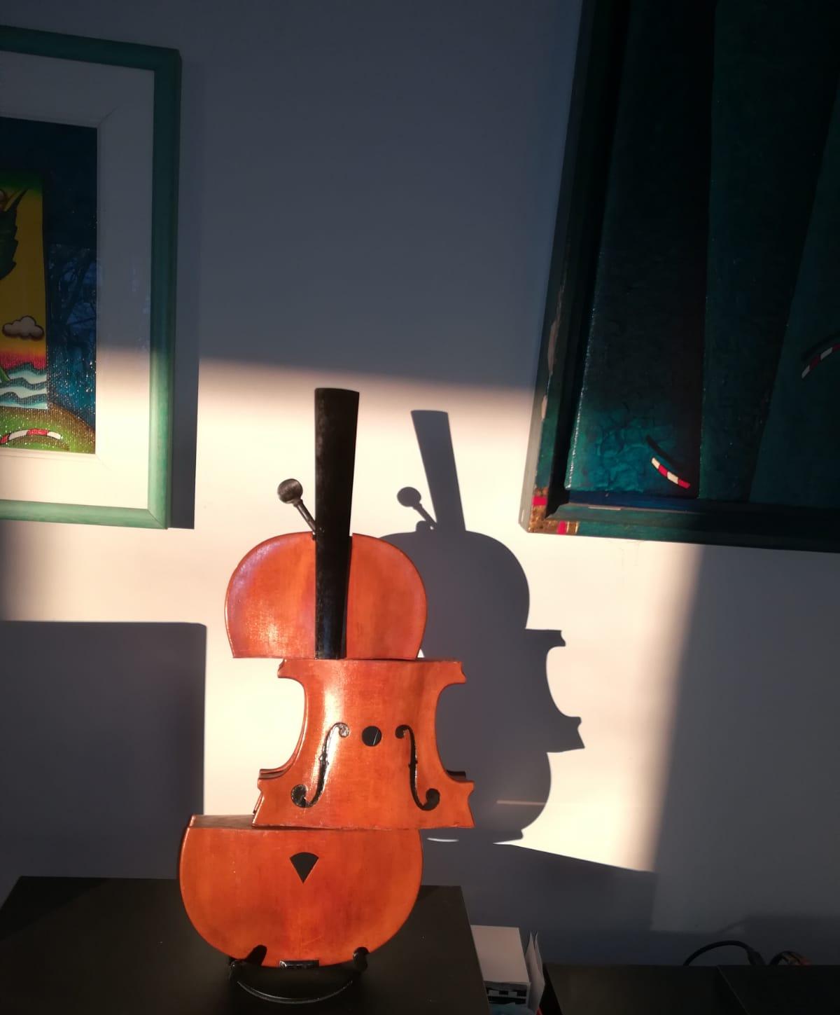 Cum spuneam, am cunoscut în Italia lucrările artistului plastic Arman, sculpturi de bronz care reprezintă instrumente de coarde descompuse. Așa mi-a venit ideea să descompun viorile neterminate ale tatălui meu și să le asamblez în mod divers. De la lemnul de vioară până la vioara întreagă, cu coarde, din care ieșeau sunete, tatăl meu a făcut absolut totul manual, chiar și călușii de vioară care trebuiau să fie adaptați viorii respective. Câteva viori au scăpat de soarta „descompunerii” și au rămas așa cum le-a lăsat tatăl meu. Pe una din ele a cântat un violonist dintr-un ansamblu din București. A cântat puțin “Méditation” din opera “Thaïs” de Jules Massenet și chiar au ieșit sunete bune. După mai bine de cinzeci de ani de tăcere totală, de atunci, pentru prima dată au ieșit sunete dintr-o vioară a tatălui meu.
