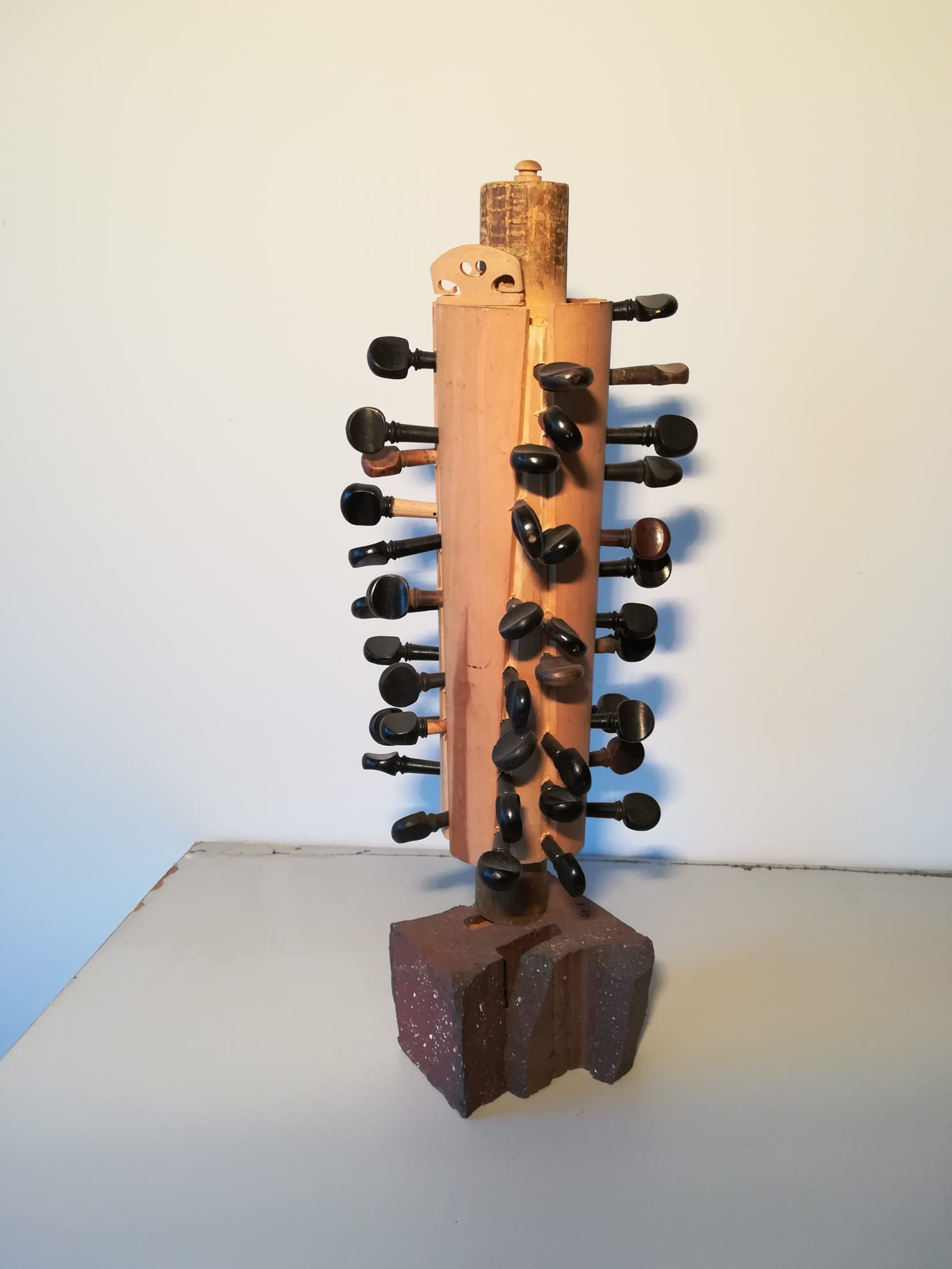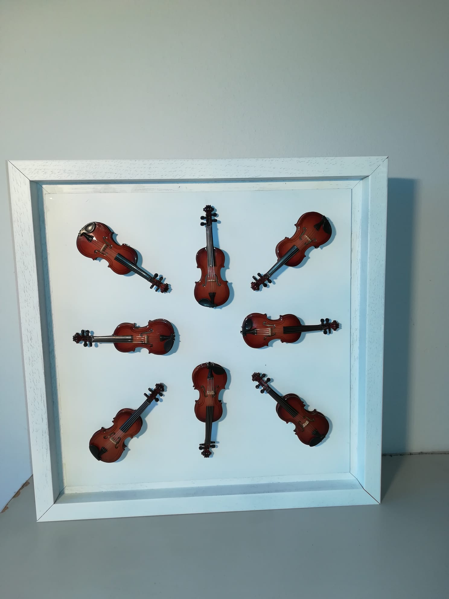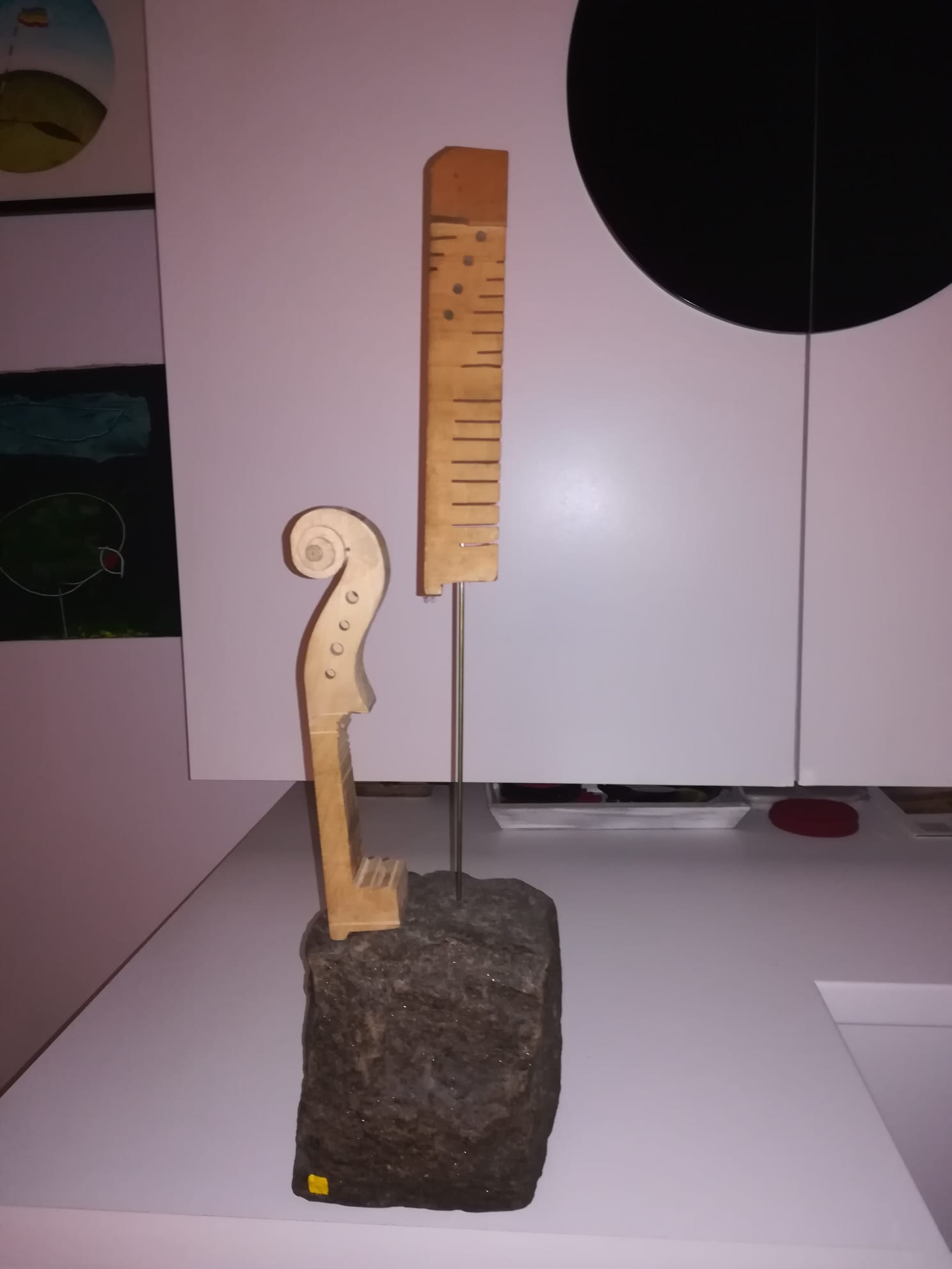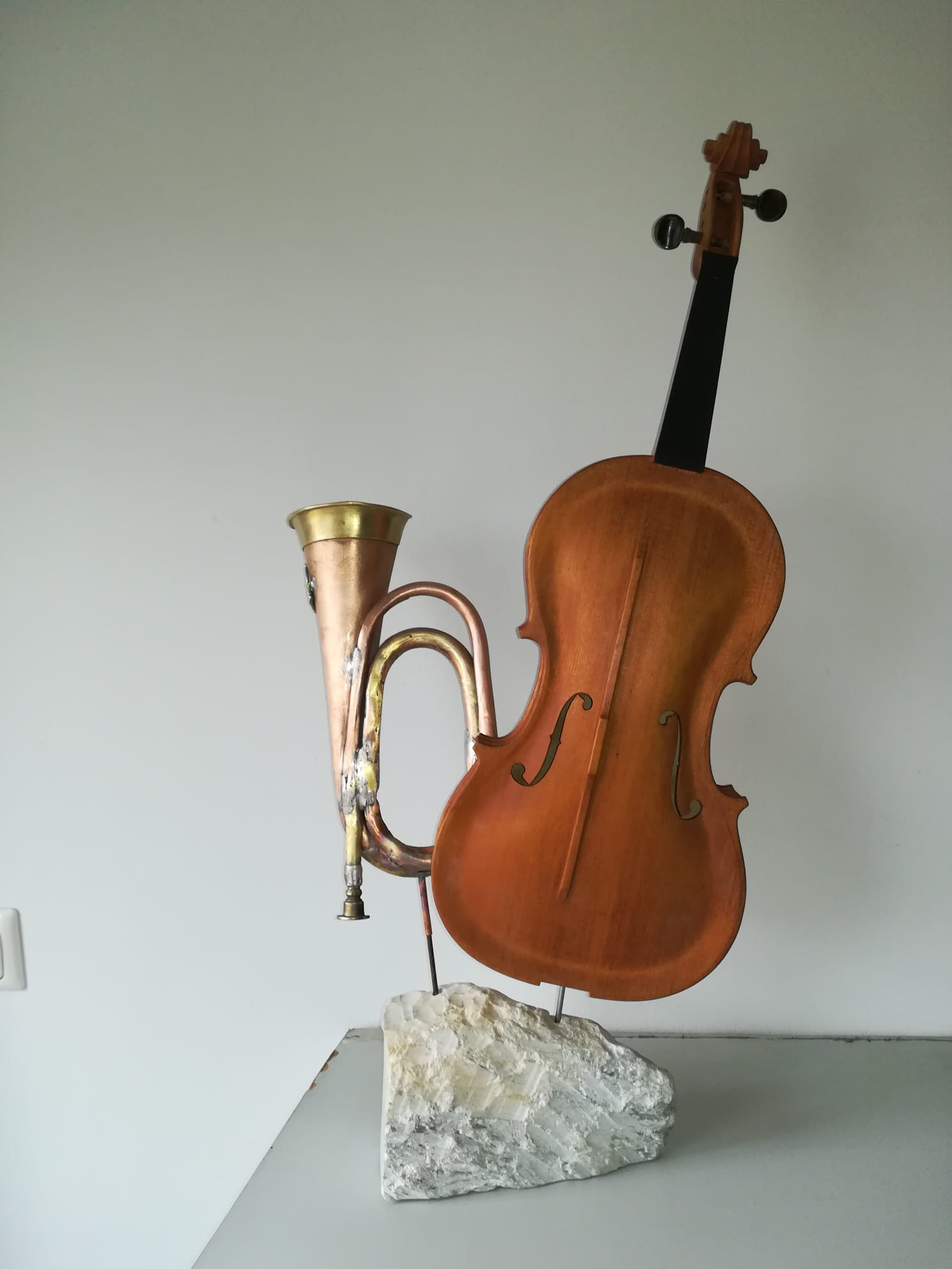 Cum spuneam, am cunoscut în Italia lucrările artistului plastic Arman, sculpturi de bronz care reprezintă instrumente de coarde descompuse. Așa mi-a venit ideea să descompun viorile neterminate ale tatălui meu și să le asamblez în mod divers. De la lemnul de vioară până la vioara întreagă, cu coarde, din care ieșeau sunete, tatăl meu a făcut absolut totul manual, chiar și călușii de vioară care trebuiau să fie adaptați viorii respective. Câteva viori au scăpat de soarta „descompunerii” și au rămas așa cum le-a lăsat tatăl meu. Pe una din ele a cântat un violonist dintr-un ansamblu din București. A cântat puțin “Méditation” din opera “Thaïs” de Jules Massenet și chiar au ieșit sunete bune. După mai bine de cinzeci de ani de tăcere totală, de atunci, pentru prima dată au ieșit sunete dintr-o vioară a tatălui meu.