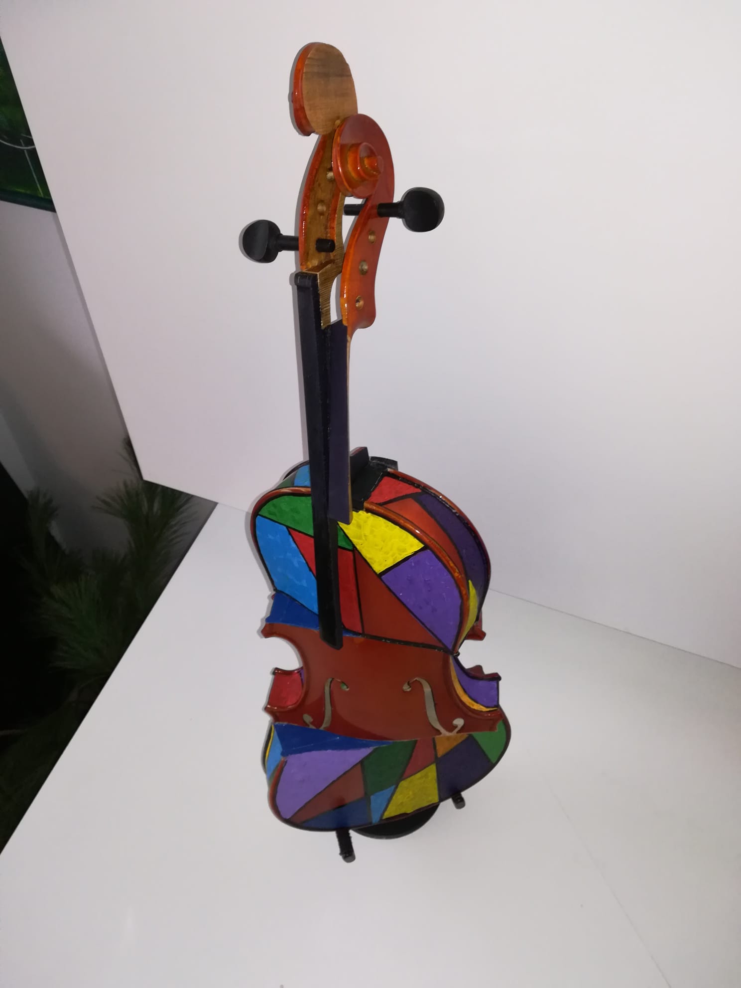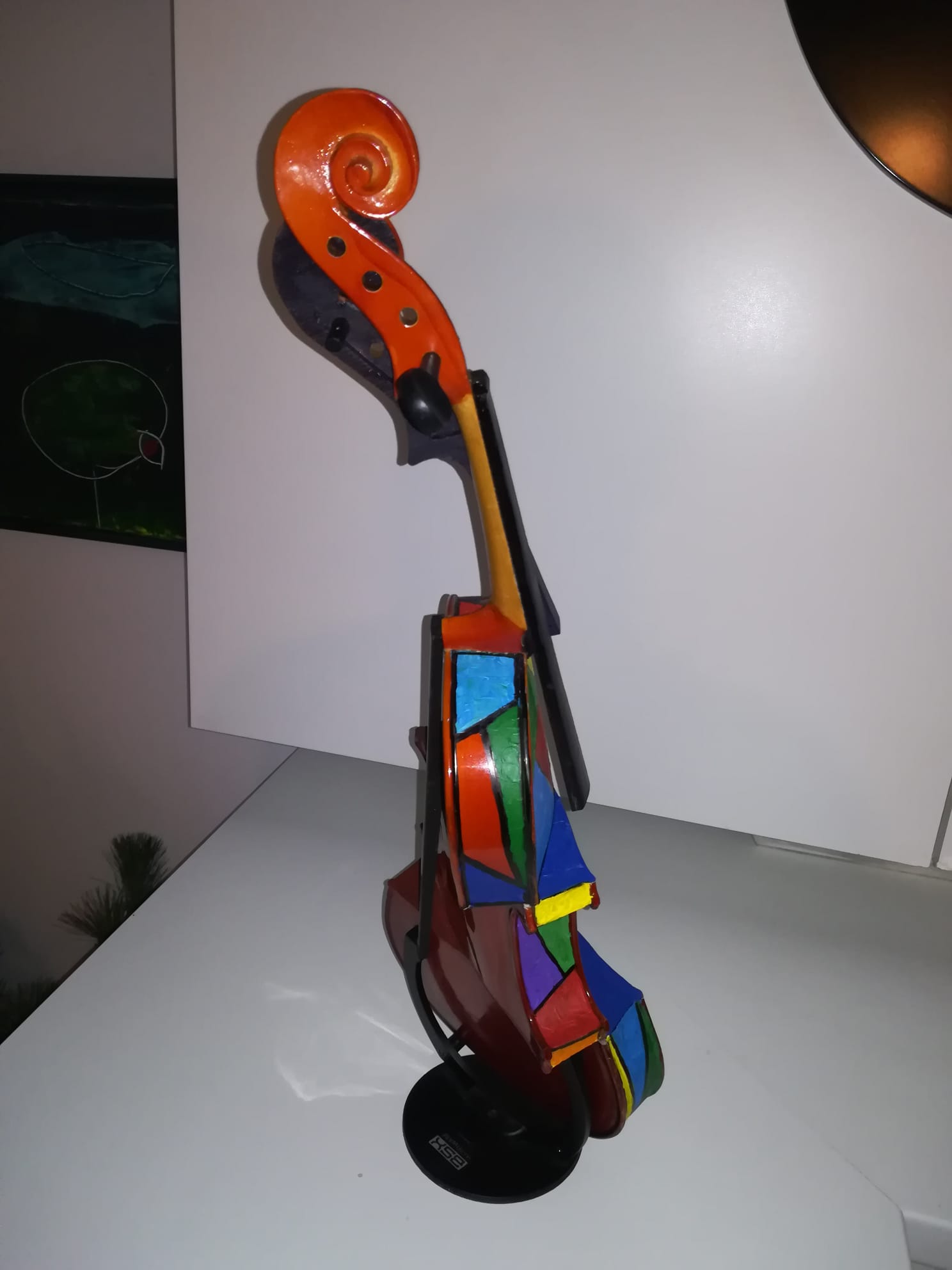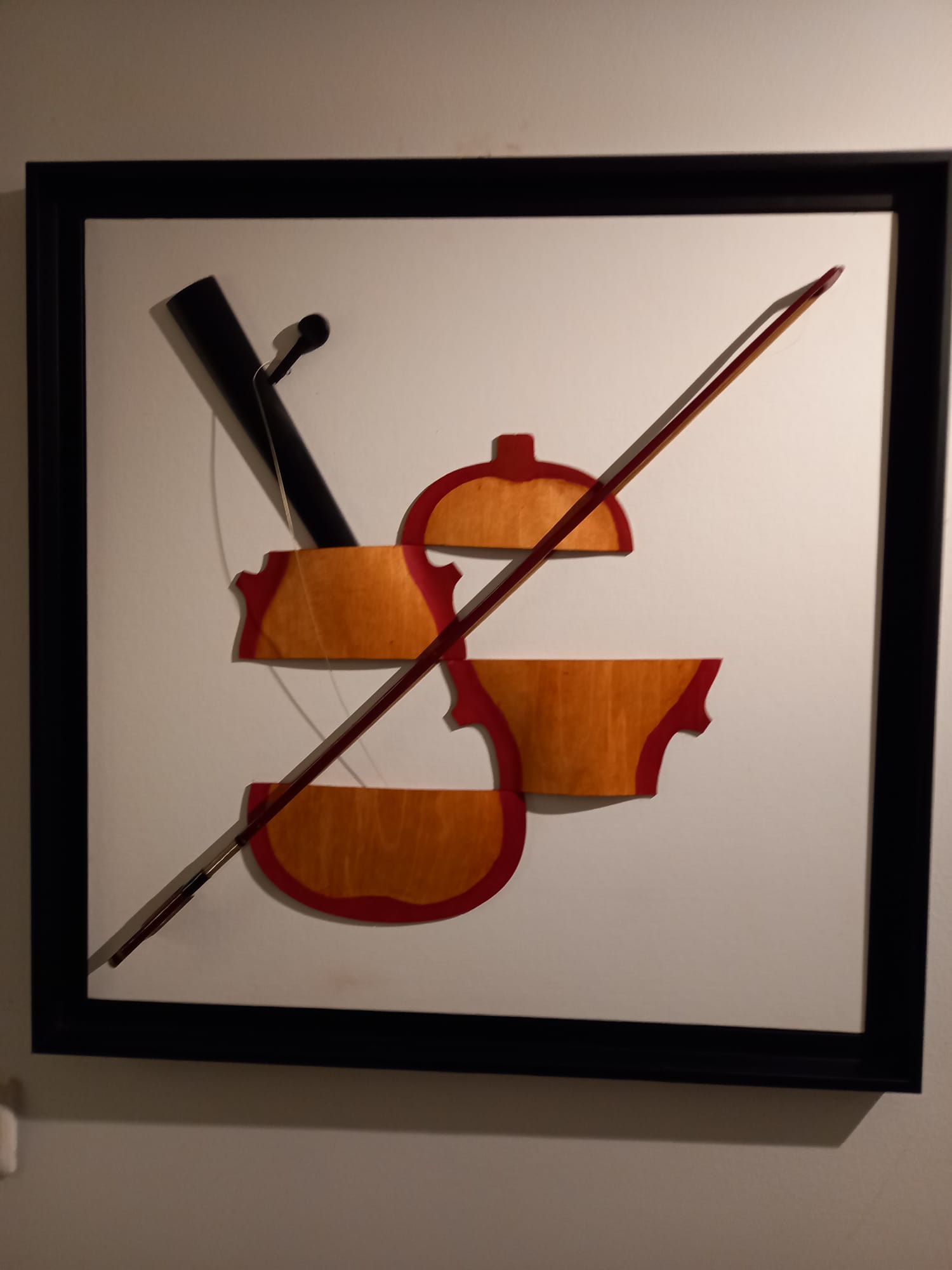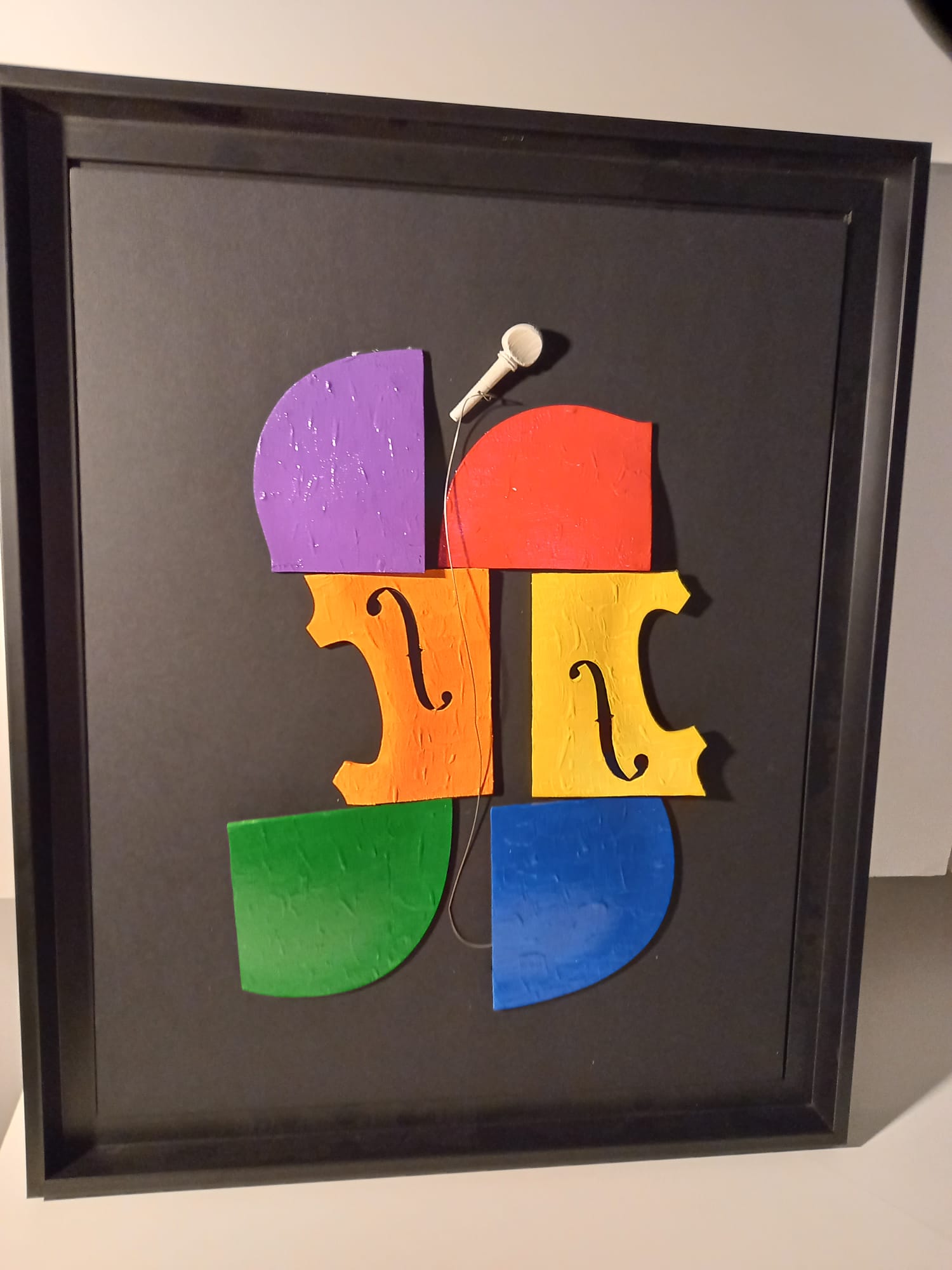 Tema expoziției este „vioara” deconstruită, recompusă, uneori în asocieri cromatice.
