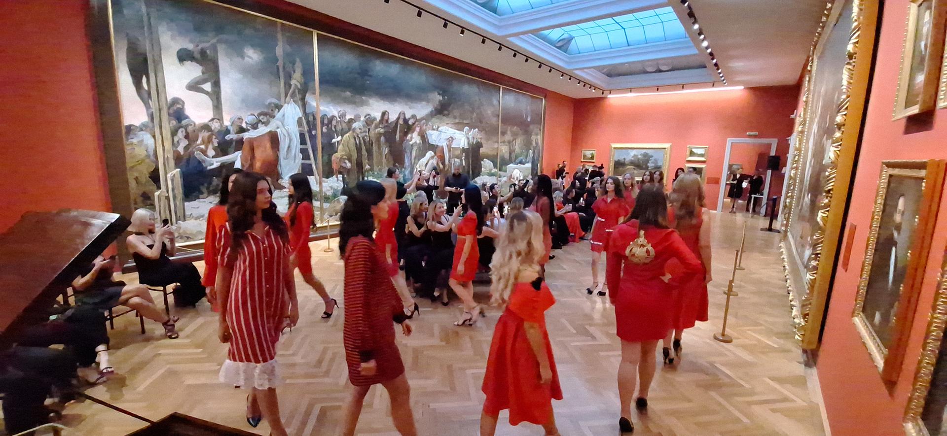 Dacă toate creațiile au fost realizate în roșu, spectatorii au trebuit să respecte regula de a veni îmbrăcați în negru, pentru un contrast cât mai bun cu purpuriul rochiilor prezentate și al Pinacotecii.