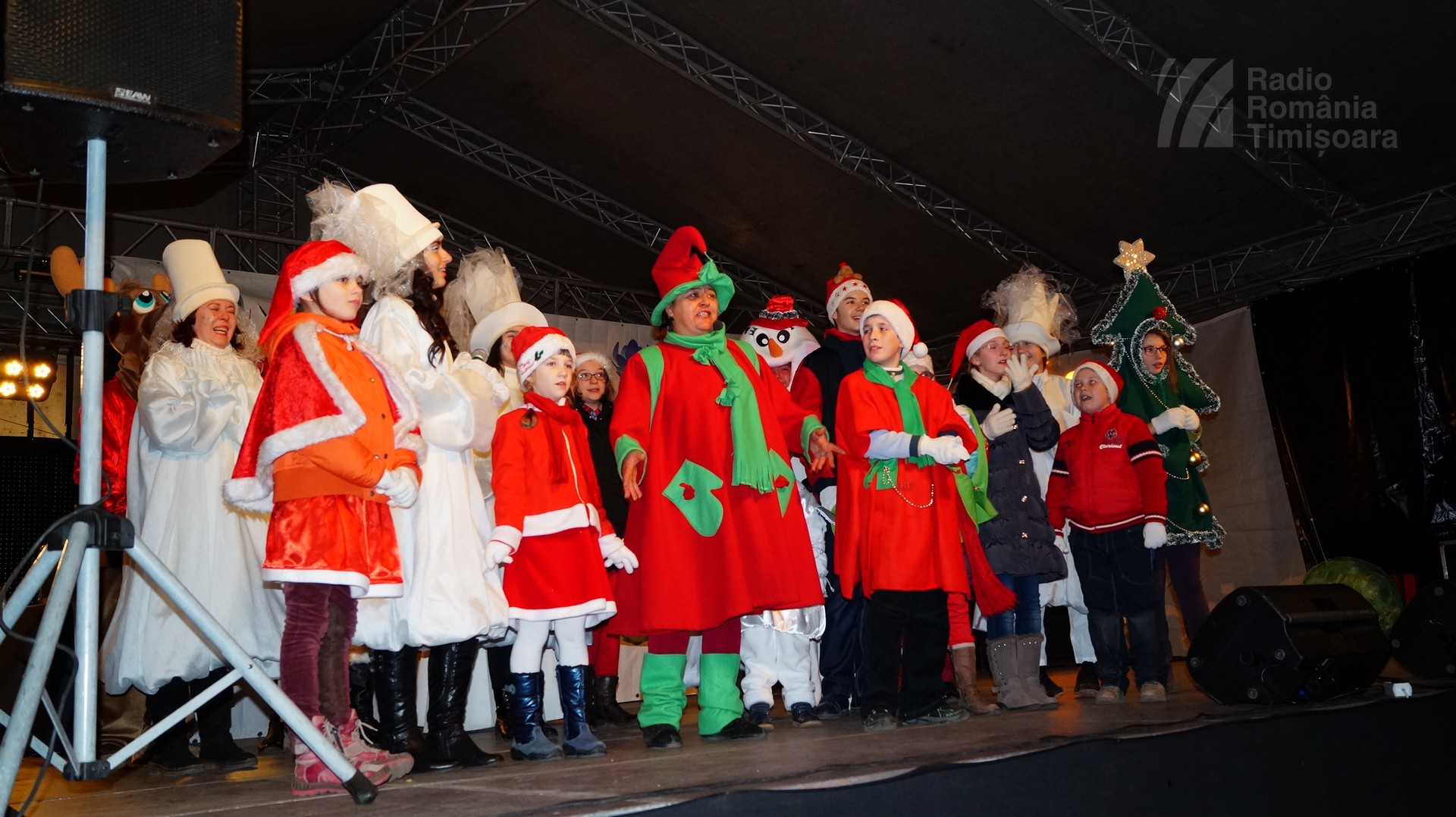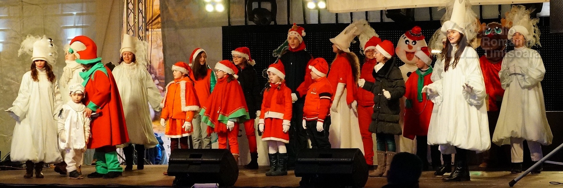 VIDEO/ FOTO/ Copiii de la „Piti-Show” l-au primit pe Moş Crăciun pe scena din centrul Timişoarei
