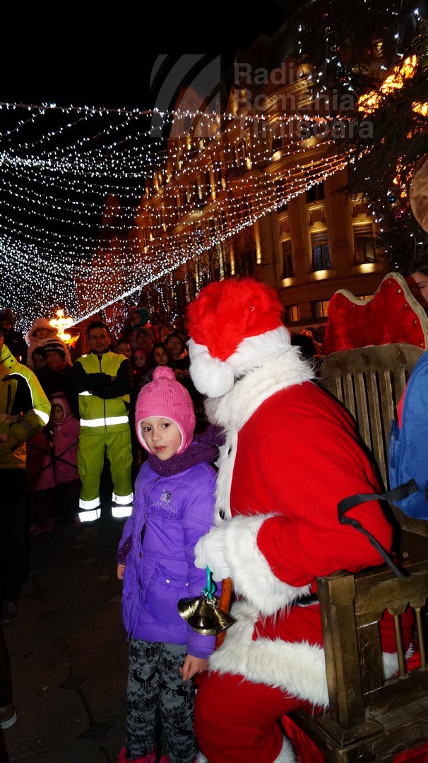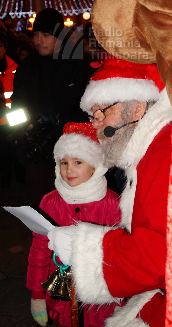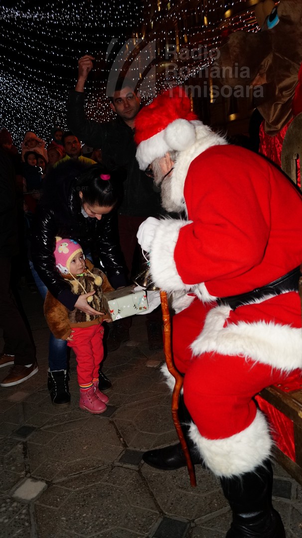 Cine a fost în centrul Timişoarei duminică l-a văzut pe Moş Crăciun, aducând cadouri micuţilor care i-au scris (şi au lăsat scrisorile în cutia din preajma scenei).