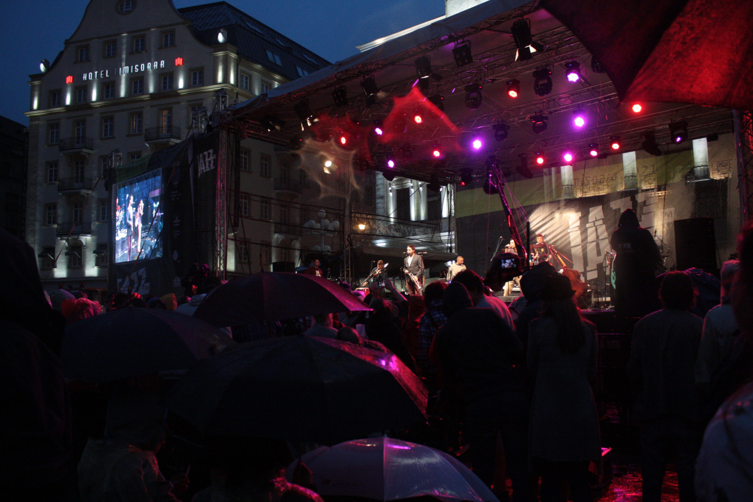 Avertizarea de vreme nefavorabilă s-a adeverit în cea din urmă seară a Festivalului Internațional JazzTM. Ploaia s-a întețit asupra Timișoarei odată cu urcarea pe scenă a australienilor de la The Cat Empire, ceea ce nu a împiedicat publicul să vină în număr tot mai mare.