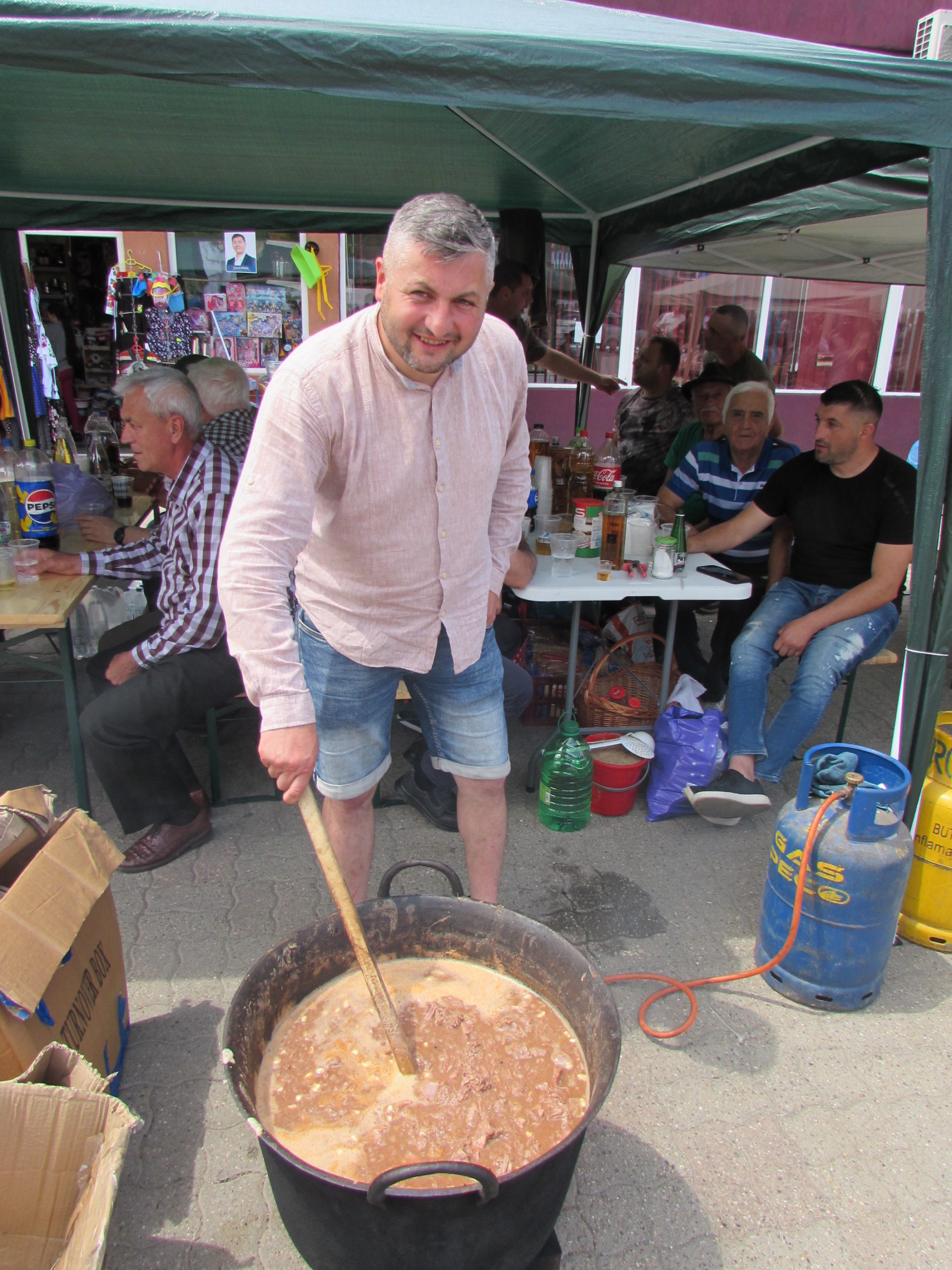 Pe lângă ceaunul cu gulaş de căprior, în stil unguresc, puţin picant, cei din Bocşa au pregătit şi, de acum tradiţionali, mici cu carne de viezure. Noroc că am fotografiat din vreme. La momentul înregistrării secvenţei sonore ceaunul era ras, iar micii se terminaseră de mult. Se formase coadă încă de când i-au pus pe grătar.