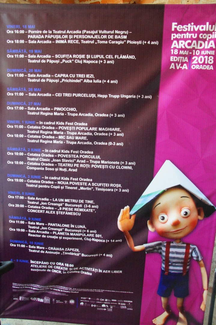 Cetatea Oradea s-a transformat de astăzi, pentru trei zile, într-o Țară a Copilăriei. Lecțiilor de la școală le-au luat locul cele de olărit, minigolf, tir cu arcul şi … echitaţie, iar în curtea Cetăţii au început spectacolele: cei mici au întâlnire cu Toppolina și Hapciu, iar carismatica Ella Bella a venit la festival tocmai din YupiLandia. Eduard și Bianca au învăluit cetatea în magie, iar duminică de la 5 preia acest rol Iluzionistul Lorenzo. Sâmbătă de la 10 – Trupa Marionete a Teatrului Clasic „Ioan Slavici” din Arad ne invită la Jocuri Magice , iar de la prânz actorul Marian Râlea, va anima festivalul cu spectacolul “Judecata Poveștilor”.